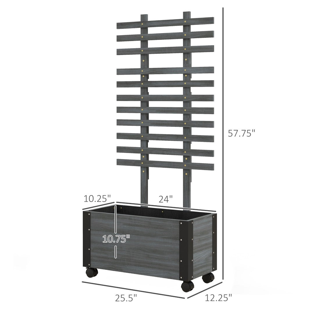 - Raised Garden Bed with Trellis and Flower Box on Wheels Info: Overall Dimensions: 25.5" W x 12.25" D x 57.75" H. Plant Box Inner: 24" W x 10.25" D x 10.75" H. Holds up to 11 gallons of soil. Weight Capacity: 77 lbs.