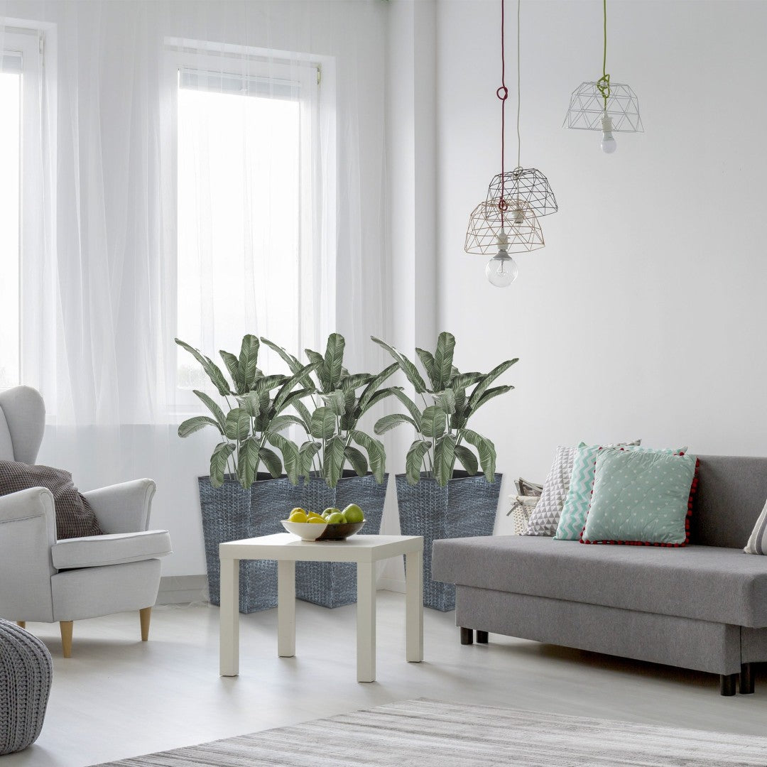 Give your entryway, patio, or indoor living space an instant style upgrade with this coordinated set of three tall planters. Each piece blends a contemporary rattan-like texture with durable, UV-resistant polypropylene construction so they look great season after season while protecting your plants with convenient drainage.