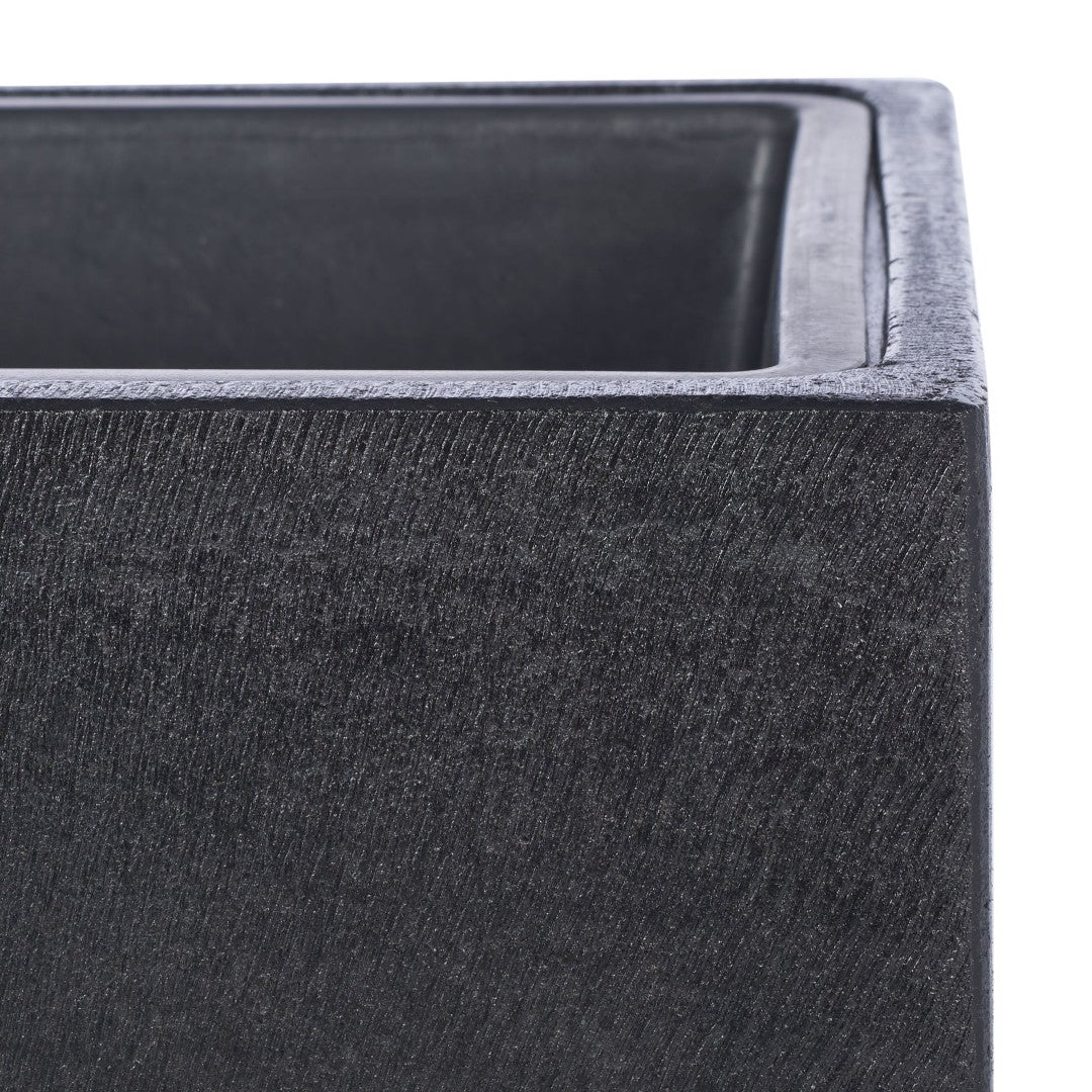 Elevate your outdoor or indoor living space with a sculptural planter that blends minimalist modern design and rugged durability. The Larlen Planter's clean cubist silhouette and deep black stone finish create a striking contrast with lush greenery, making it an elegant focal point for patios, terraces, entryways, or contemporary interiors.
