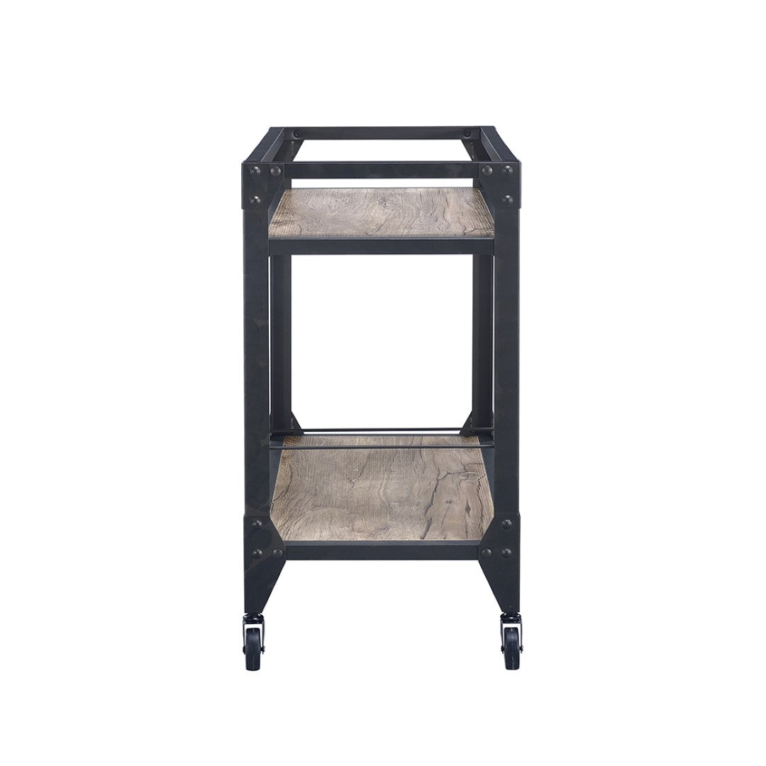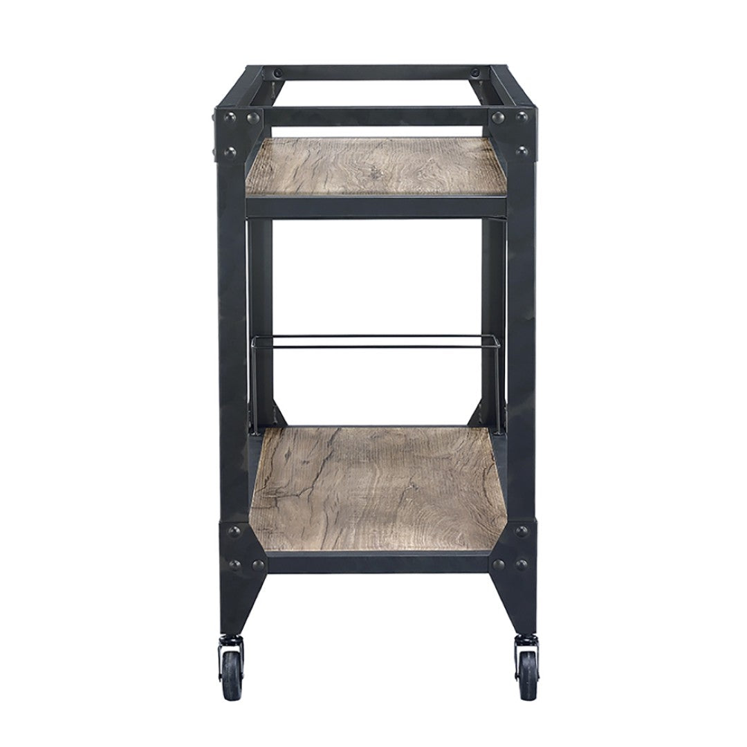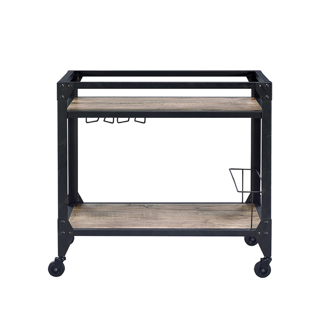 Bring industrial-inspired warmth to your entertaining space with this two-shelf serving cart that balances rustic character and practical functionality. Thoughtfully designed for both casual get-togethers and polished dinner parties, it keeps bottles, glassware, and serving pieces organized and easy to move from room to room.