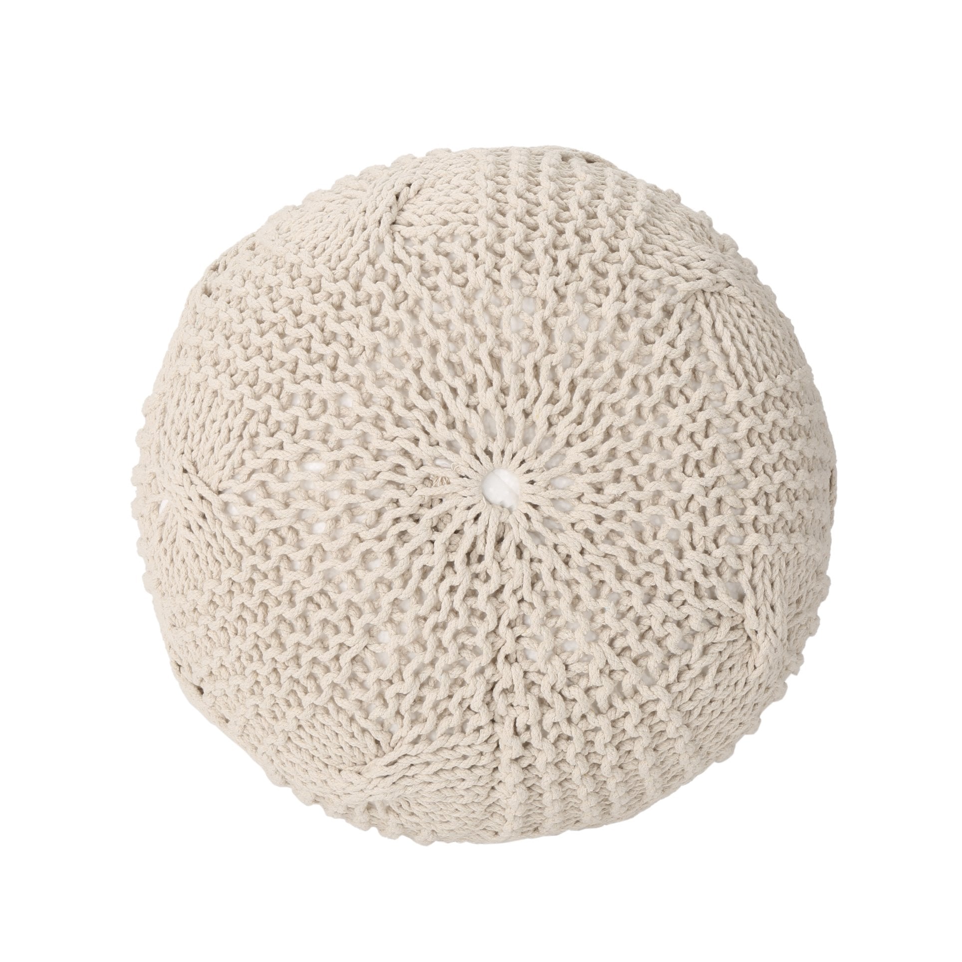 Add a touch of cozy, handcrafted style to any room with this knitted cotton round pouf. Soft to the touch and versatile in use, it works as an ottoman, extra seating, or a decorative floor cushion—perfect for living rooms, bedrooms, or reading nooks.