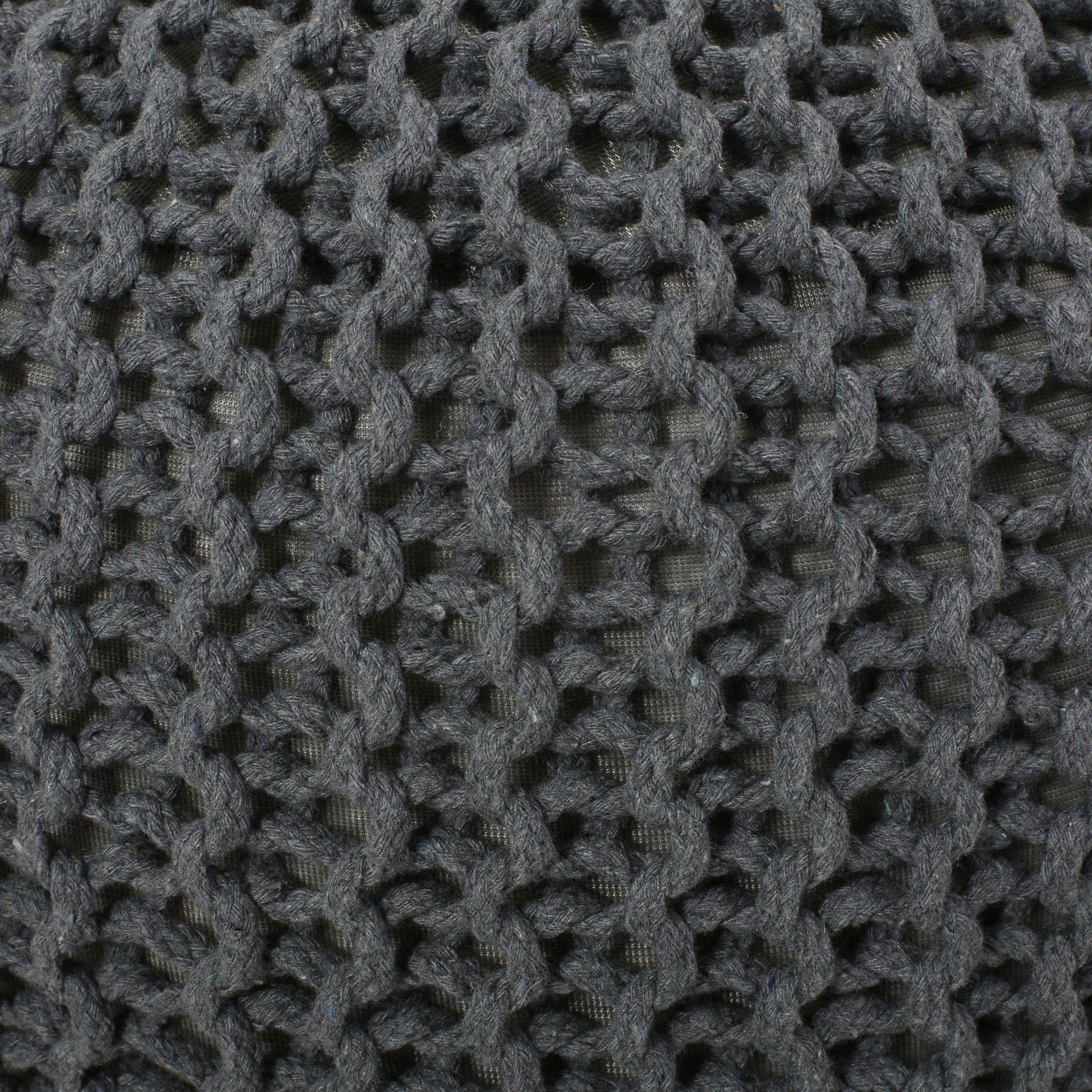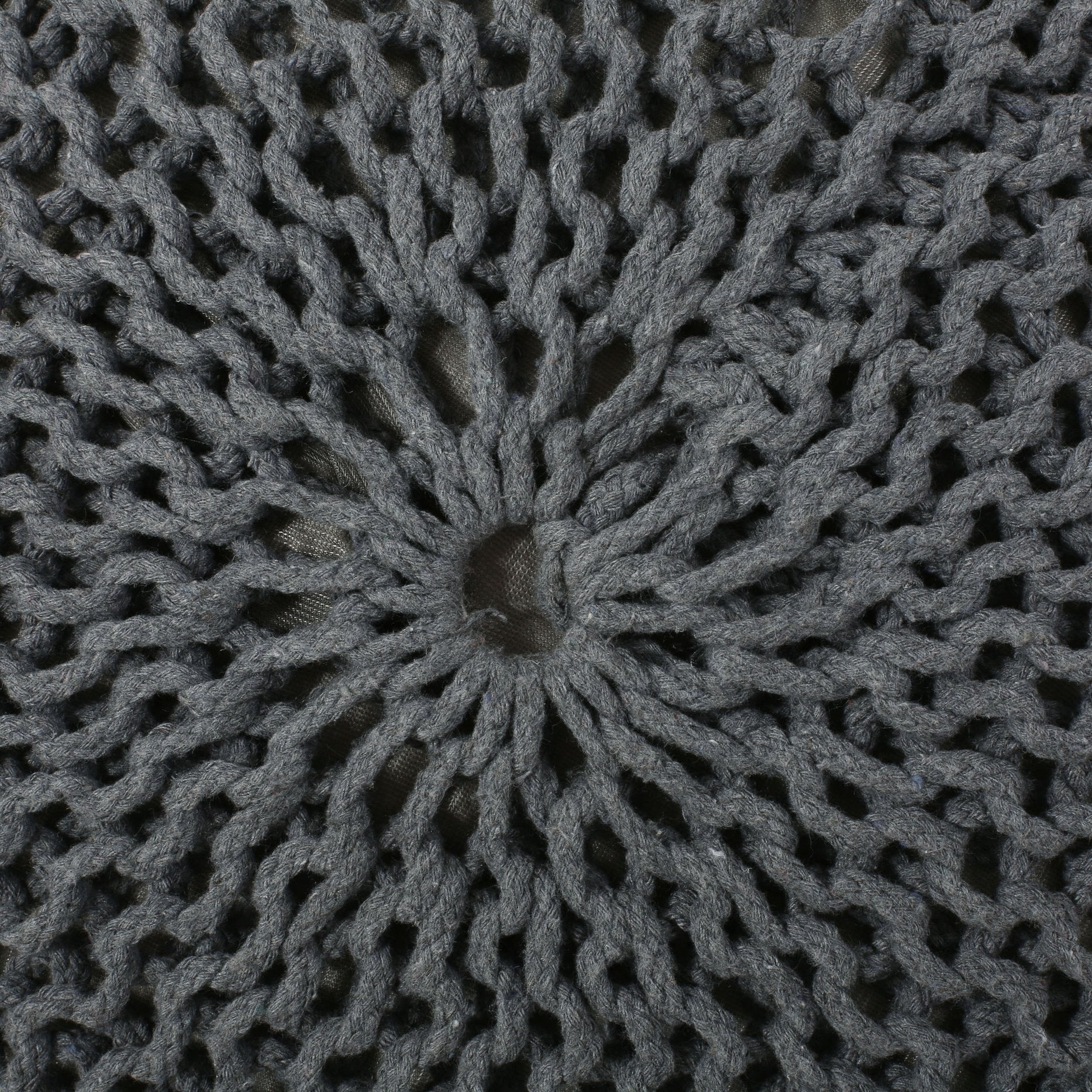 Add a touch of relaxed, contemporary style to any room with this Bordeaux knitted cotton round pouf. Soft to the touch and visually textured, the pouf serves as a versatile accent—use it as extra seating, a footrest, or a casual side table with a tray. Its neutral gray knit complements modern and transitional decor while providing practical comfort.