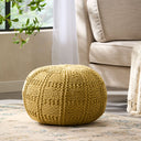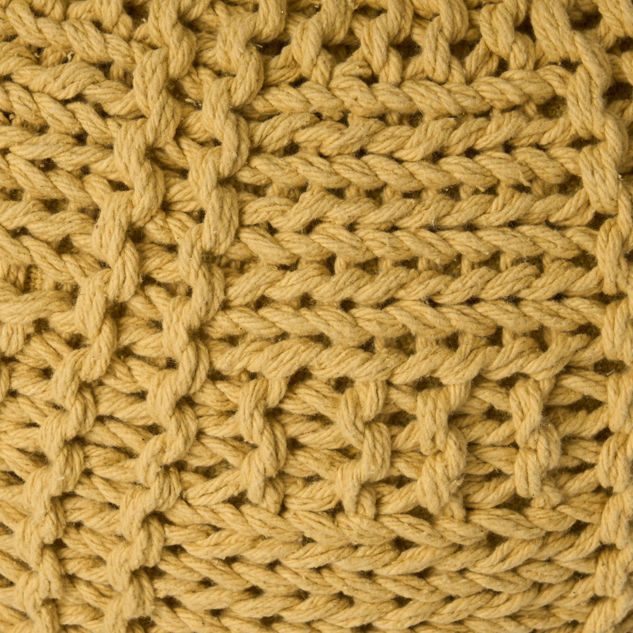 Add a cozy, modern accent to your living space with this handcrafted knitted cotton pouf. Soft to the touch and visually inviting, it works as extra seating, a footrest, or a decorative focal point. Carefully made by artisans, the pouf brings subtle texture and breathable comfort in a cheerful yellow that complements contemporary and casual interiors.