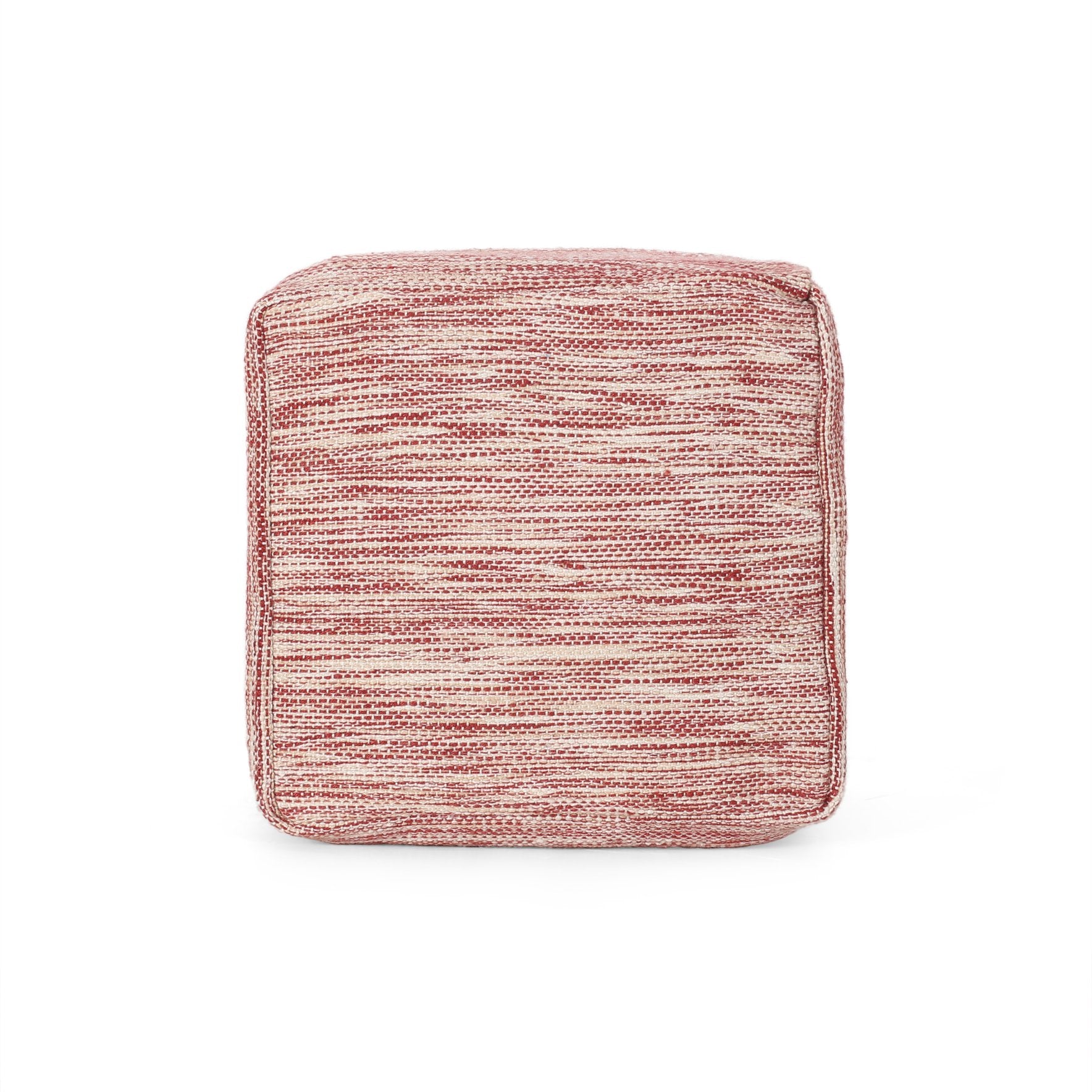 Bring cozy style and versatile seating to any room with this Enigma yarn and cotton square pouf. Its hand-crafted cotton exterior and soft polystyrene bead fill create a comfortable, lightweight ottoman or floor cushion that doubles as a decorative accent in red and white tones. Ideal for living rooms, bedrooms, nurseries, or reading nooks, the pouf offers casual seating and a relaxed, textured look that complements modern and bohemian decor.