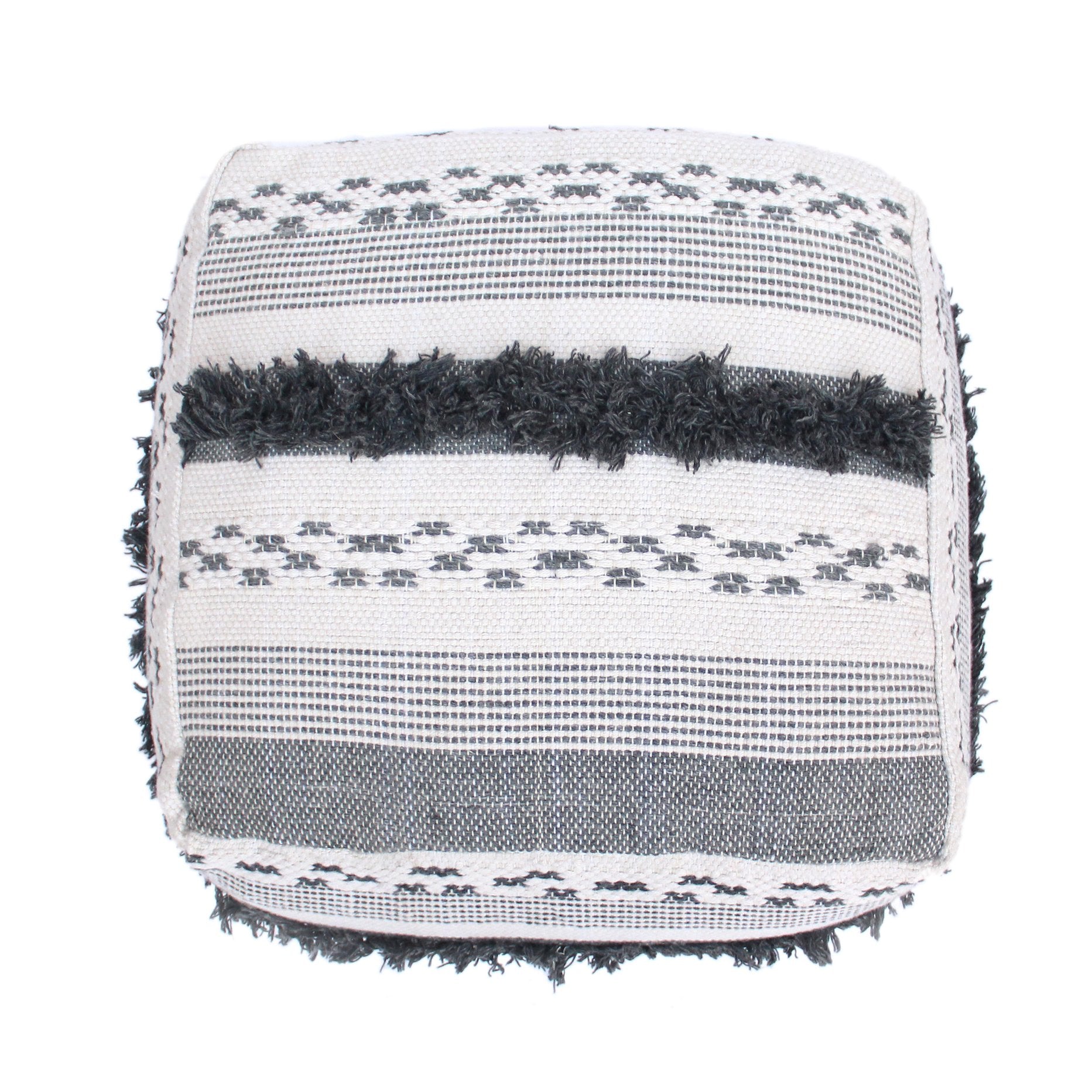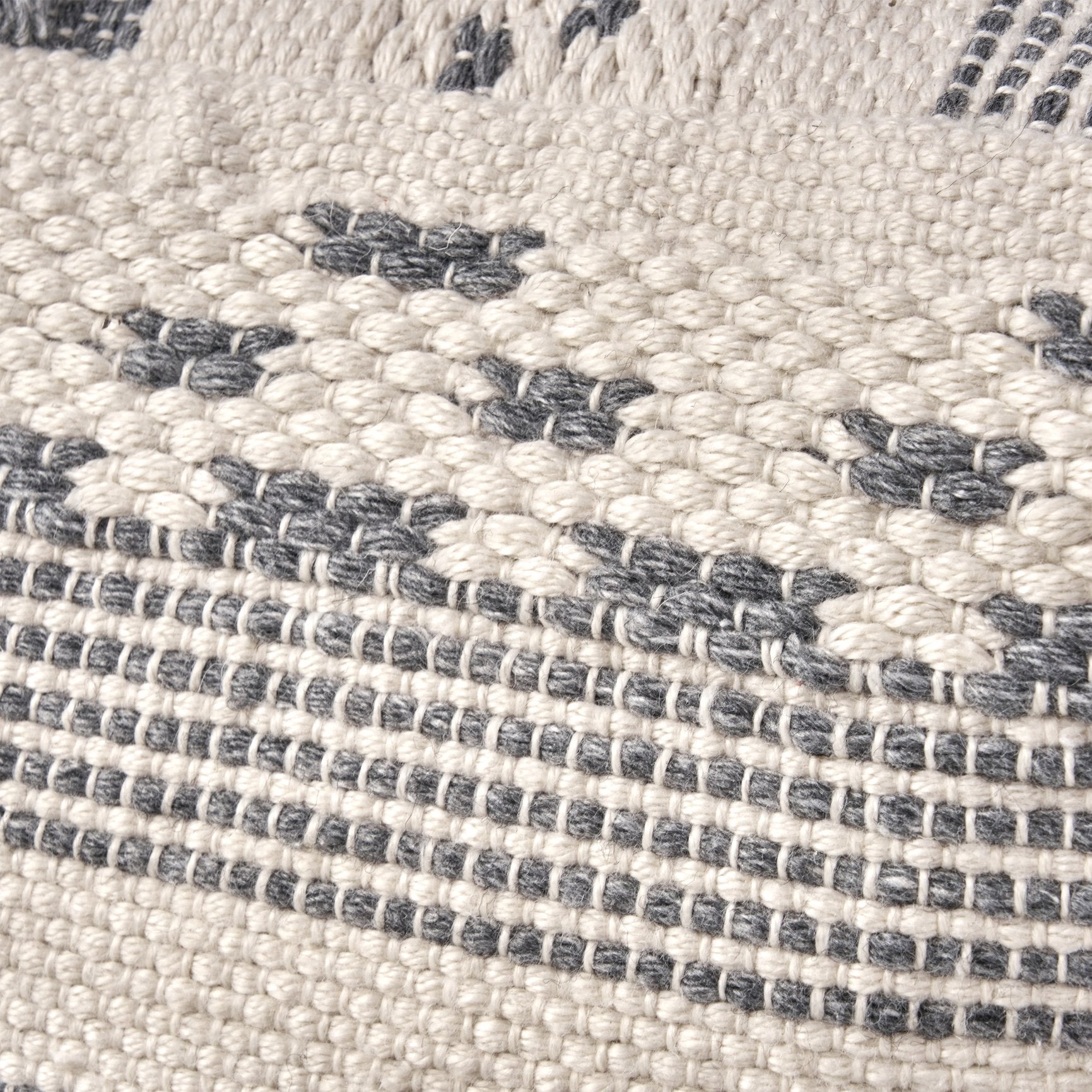 Add a cozy, contemporary accent to any room with this oversized faux yarn pouf. Soft to the touch yet sturdy enough for everyday use, it blends neutral ivory with subtle grey tones to complement modern and transitional decor. Use it as extra seating, a footrest, or a casual side table with a tray.