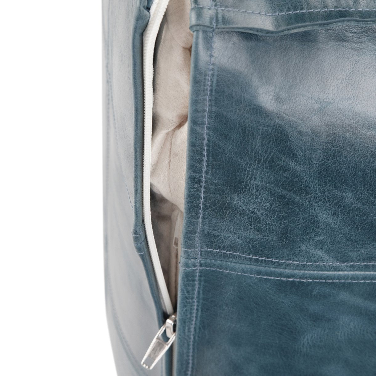 Elevate your living space with the Manning square pouf — a handcrafted teal leather accent that combines timeless style with practical versatility. Built for comfort and durability, this pouf works as a footrest, extra seating, or a decorative focal point to complement modern and traditional interiors alike.
