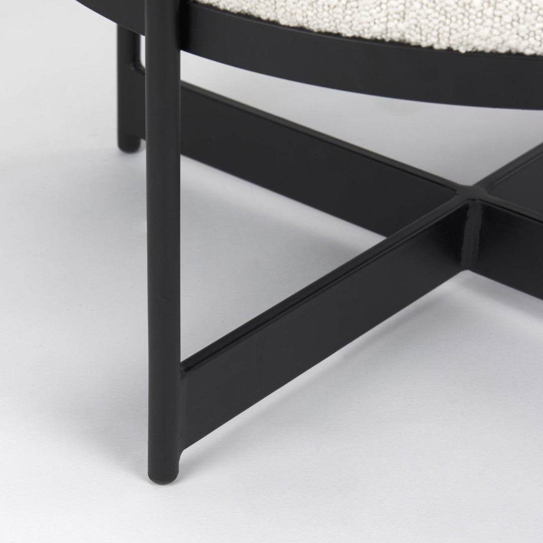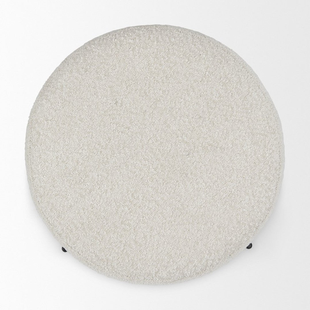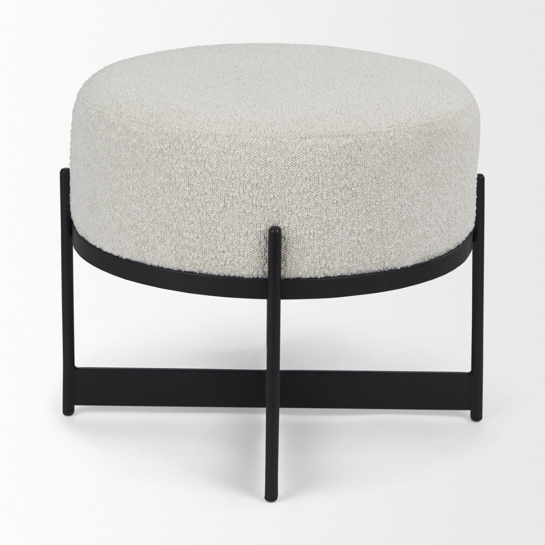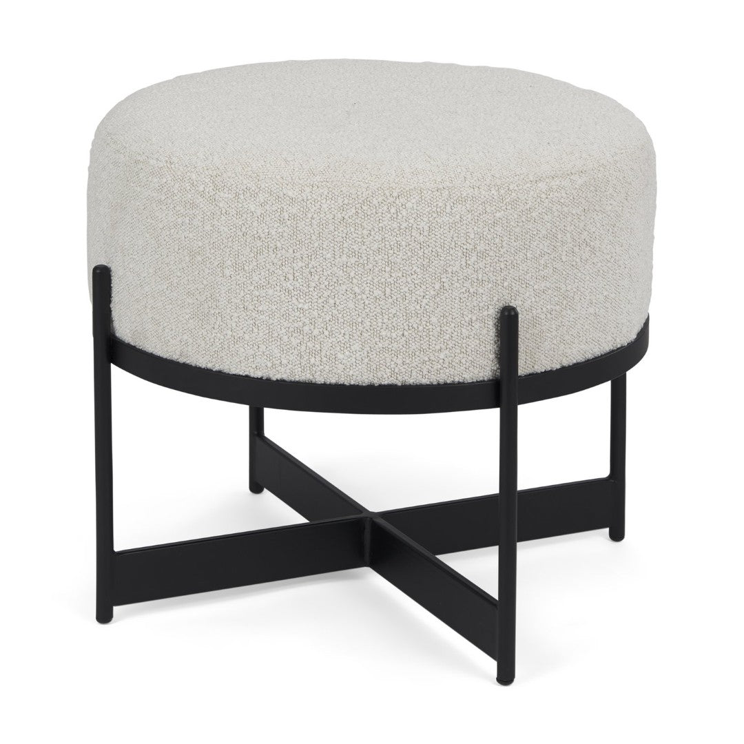 Add a touch of modern elegance and tactile warmth to your living space with this cream bouclé upholstered pouf. Built on a sturdy black iron frame and wrapped in luxurious, soft bouclé fabric, it functions as an extra seat, a comfortable footrest, or a stylish accent piece that complements contemporary and transitional interiors.