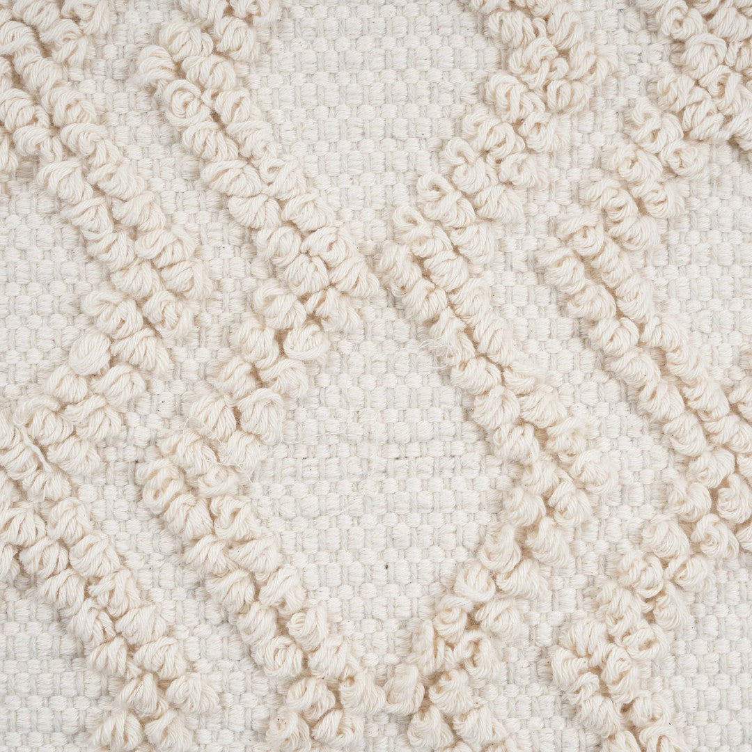 Bring effortless texture and global charm to any room with this handcrafted cotton pouf. Soft yet sturdy, it works as extra seating, a convenient footrest, or a casual ottoman”perfect for living rooms, bedrooms, nurseries, or reading nooks. The neutral cream tone and geometric patterning add subtle visual interest while tasselled edges provide a touch of artisanal detail.