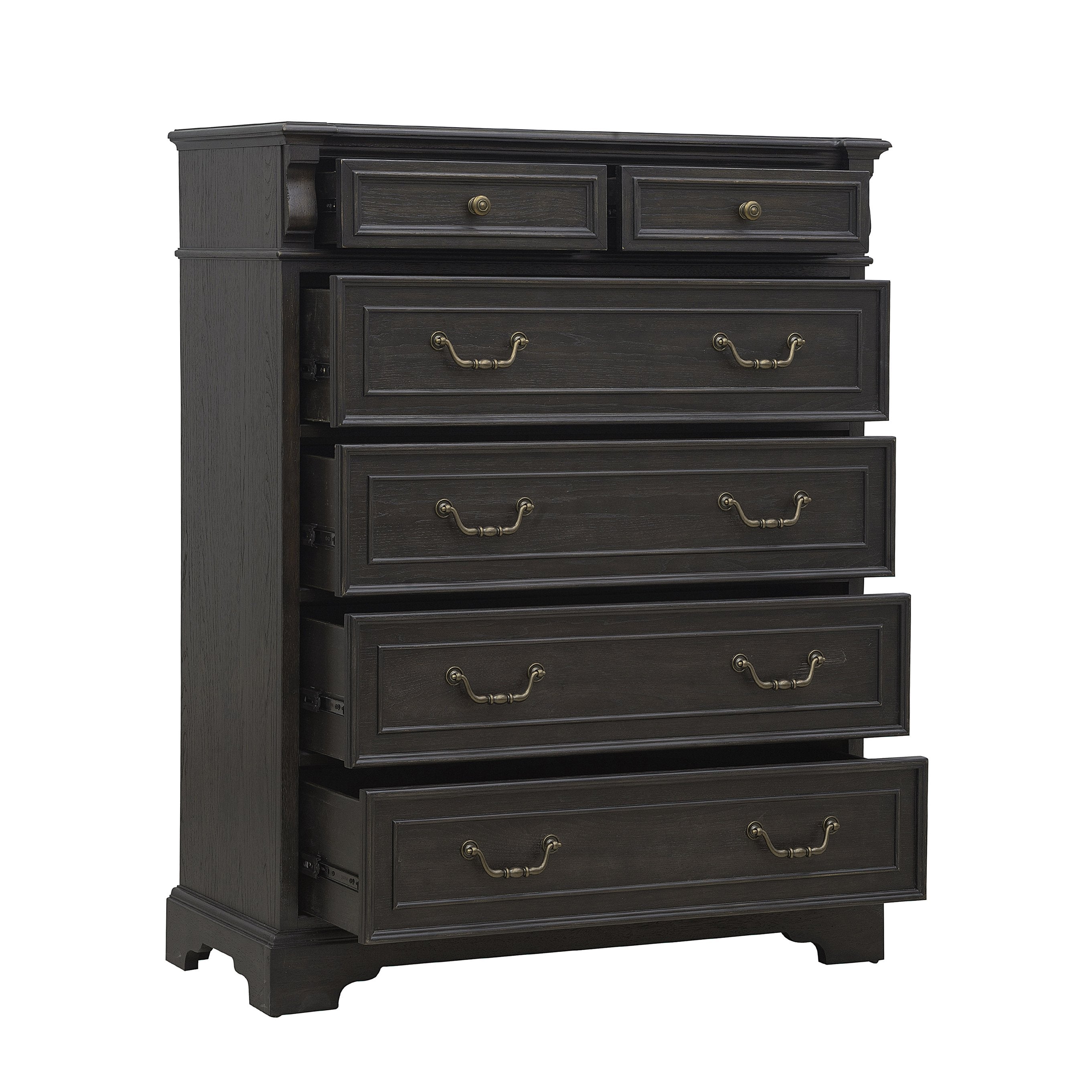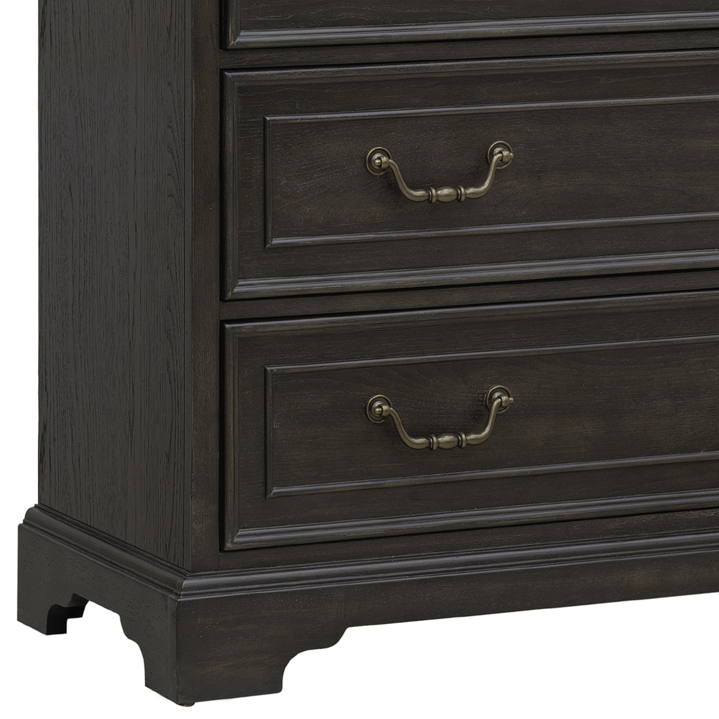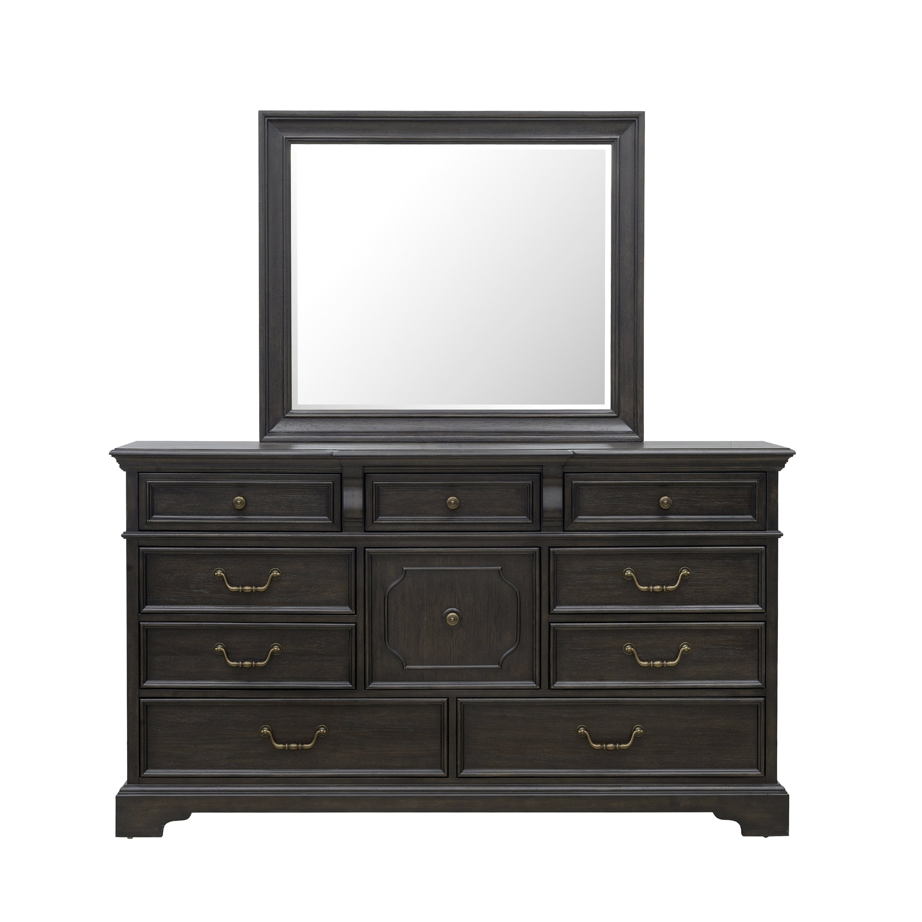 - Custom bail pulls and knobs in an aged bronze finish enhance the overall appeal, reinforcing the heritage-inspired, masculine design