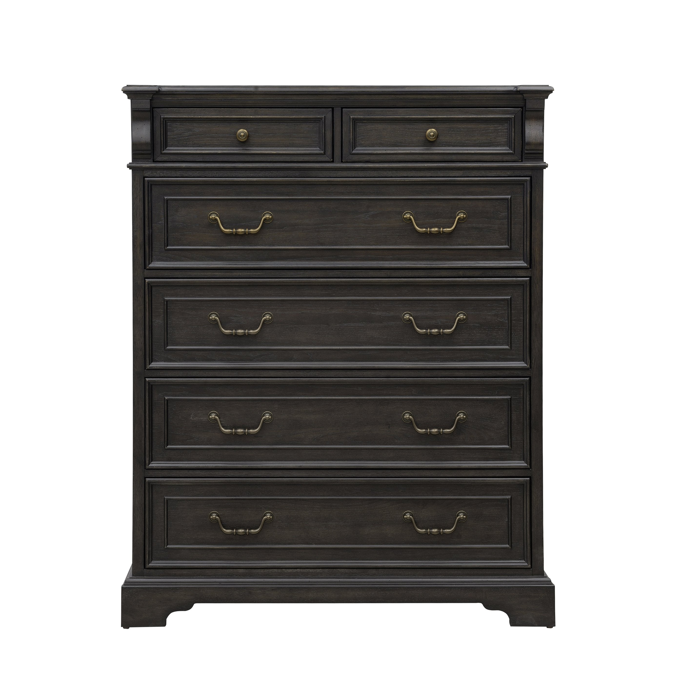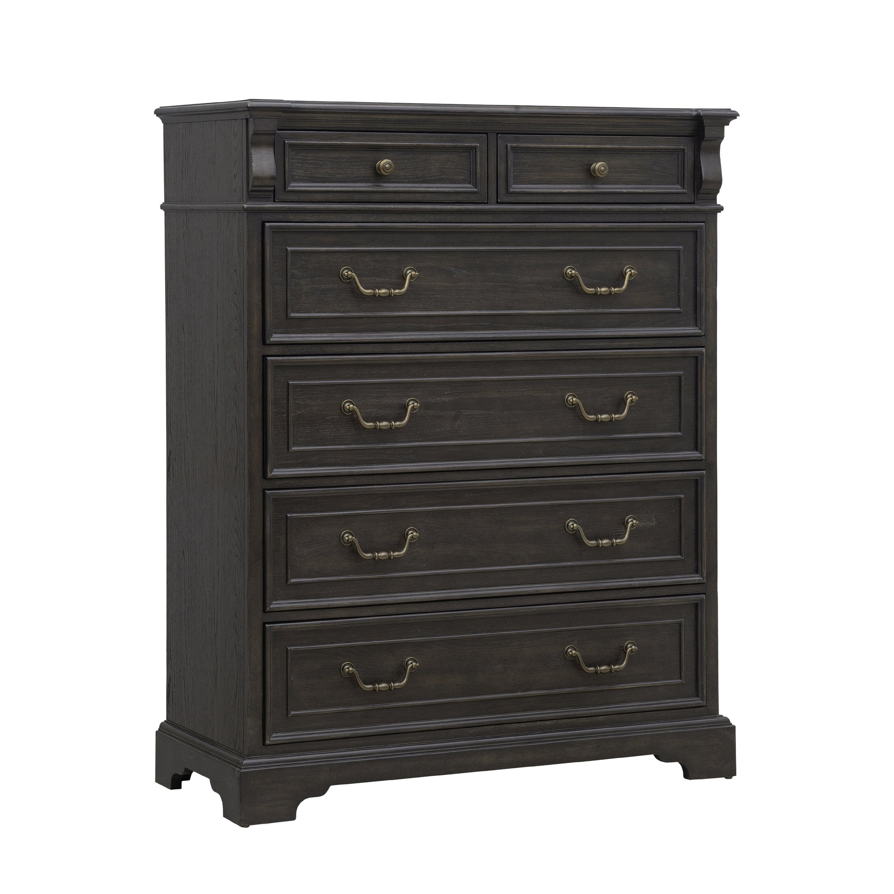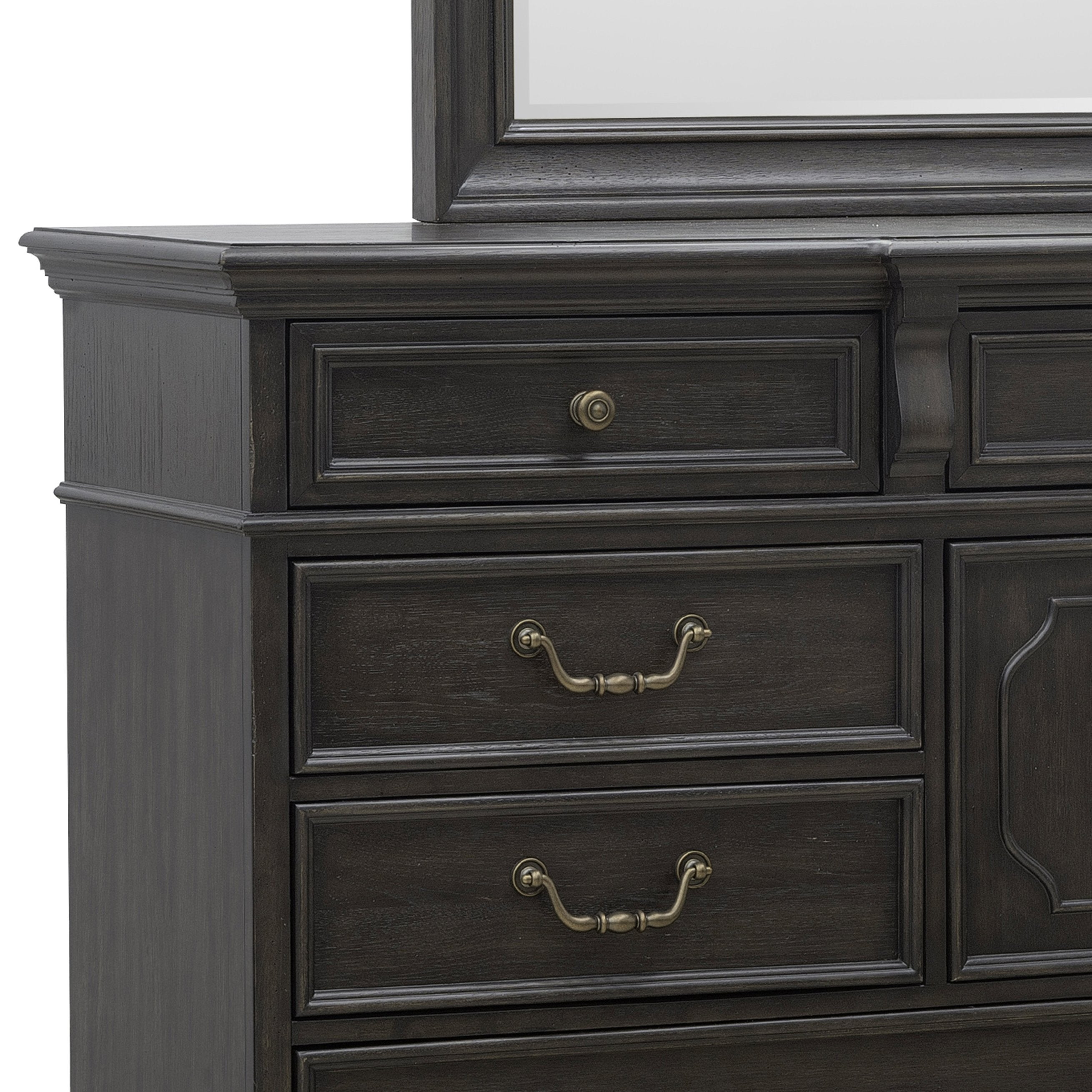 - Custom bail pulls and knobs in an aged bronze finish enhance the overall appeal, reinforcing the heritage-inspired, masculine design