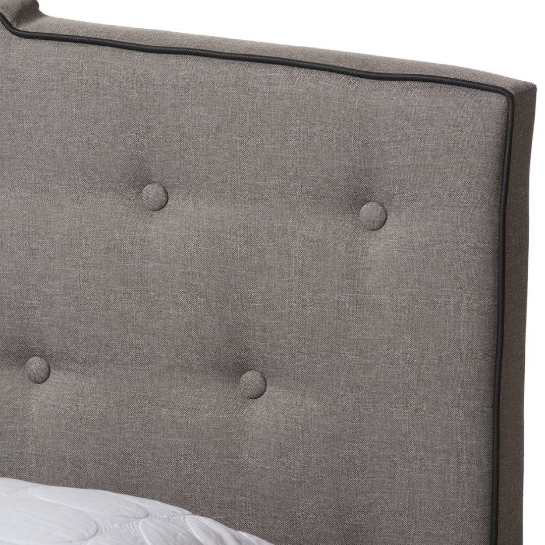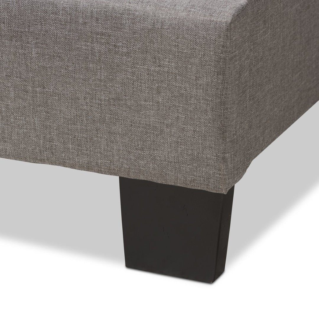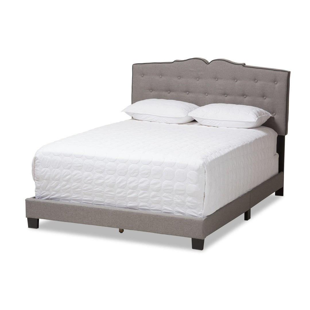 Refresh your bedroom with the Vivienne queen bed — a modern, contemporary piece that blends graceful details with comfortable support. Upholstered in light grey fabric and finished with refined piping and button-tufting, this low-profile bed brings understated elegance to guest rooms or master suites. Foam-padded for comfort and built on sturdy rubberwood legs, the Vivienne is designed for use with a box spring and mattress and arrives ready for straightforward assembly.