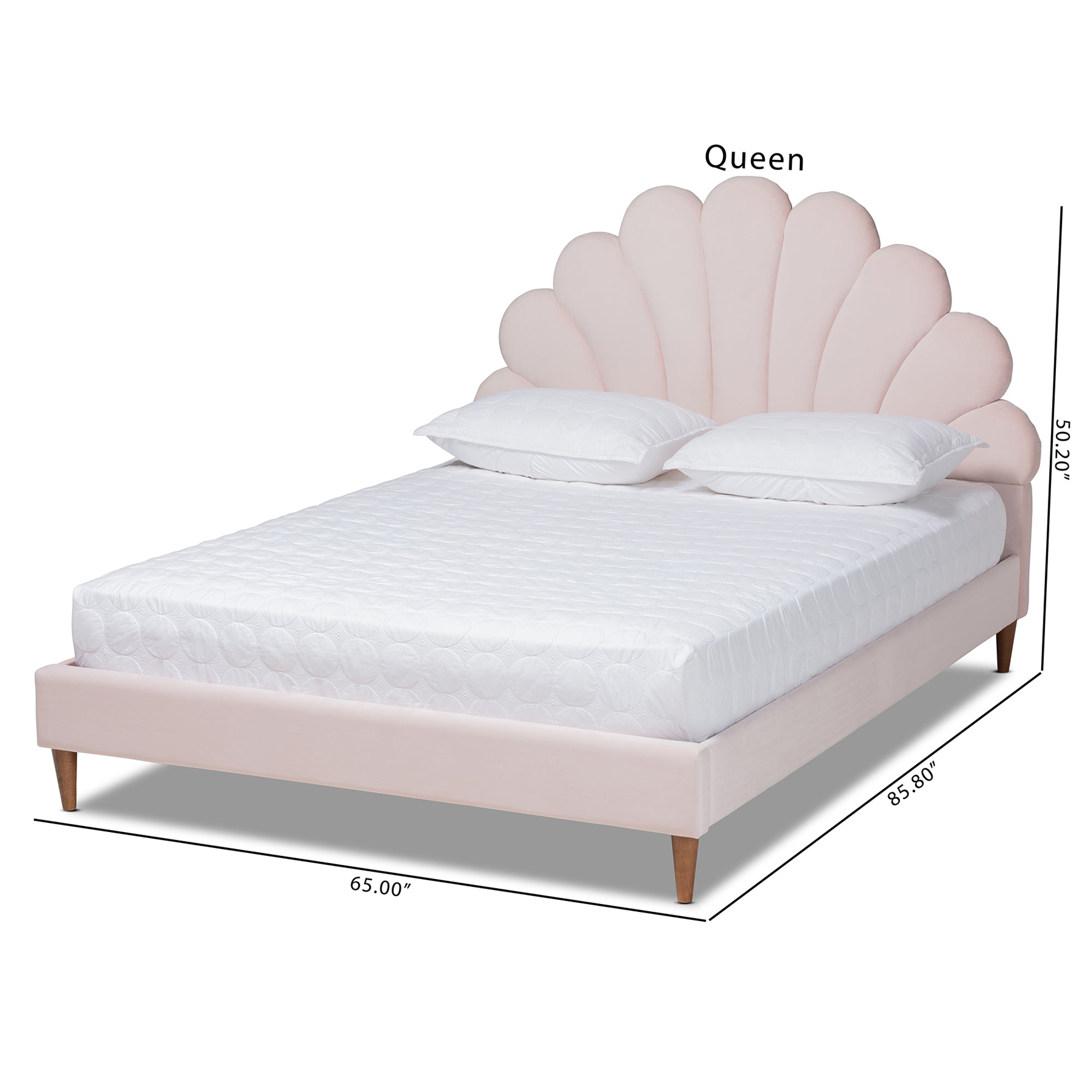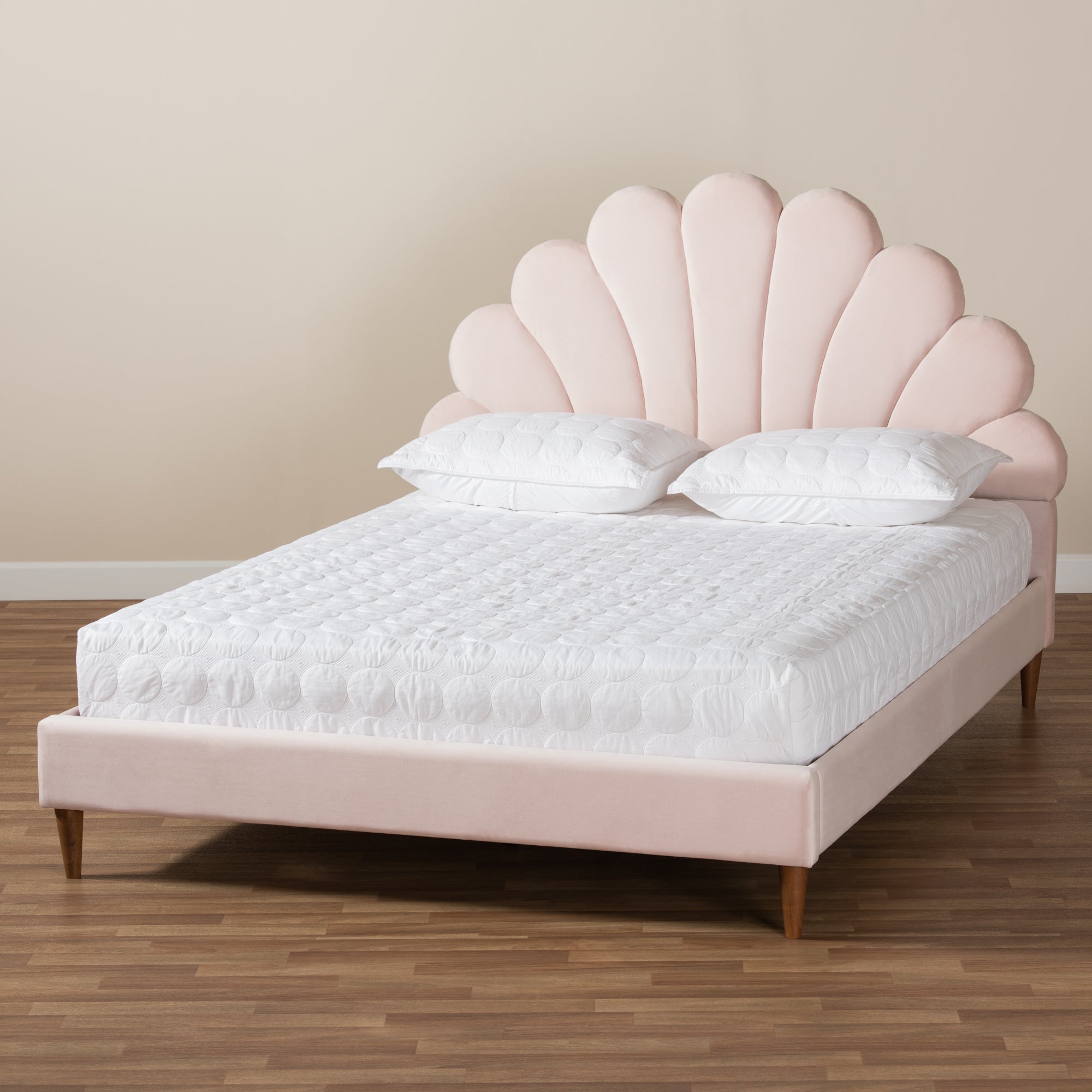 SKU:BBT6897-Light Pink Velvet/Walnut-Queen