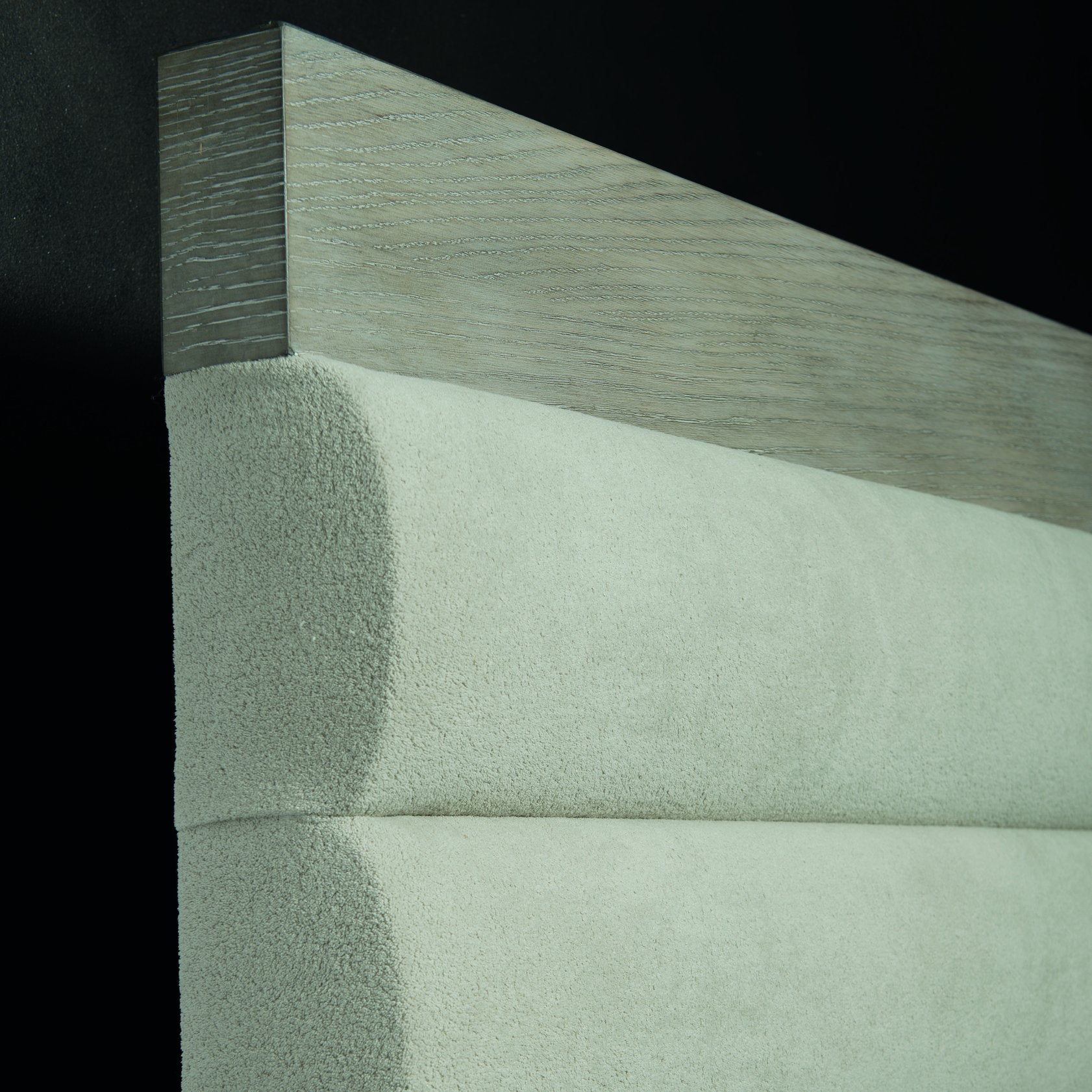 - Cerused Greige finish on the headboard with a Cerused Charcoal finish on select elements for a complementary neutral palette