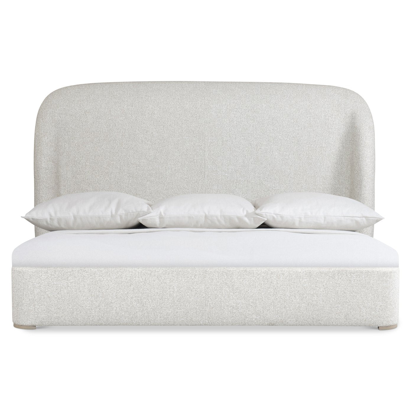 - Sheltering headboard curves inward on sides