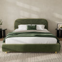 Transform your bedroom into a cozy, contemporary retreat with this boucle-upholstered queen platform bed. The curved headboard and plush foam padding offer inviting support and visual warmth, while the sturdy metal frame and wooden slat system deliver reliable mattress support without the need for a box spring. Designed for easy assembly and lasting comfort, this bed combines modern style with practical durability.