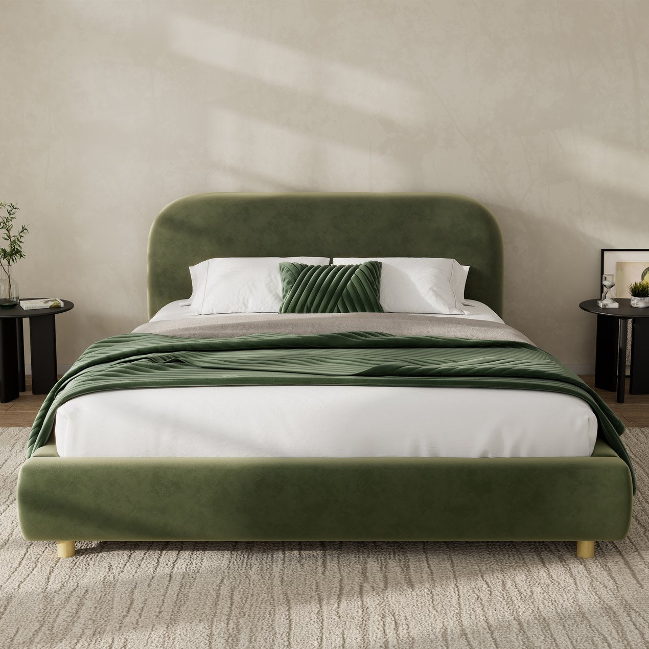 - Curved headboard with foam padding: Upholstered headboard features soft foam for comfortable back support when sitting up to read or relax.