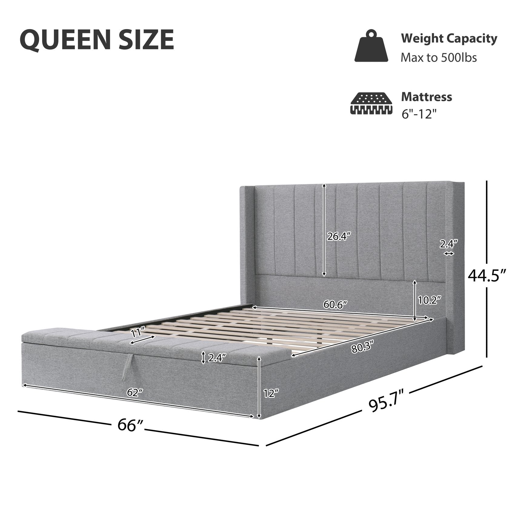 - No box spring required: Integrated slat system supports mattresses 6–12 inches thick, eliminating the need for an additional foundation.