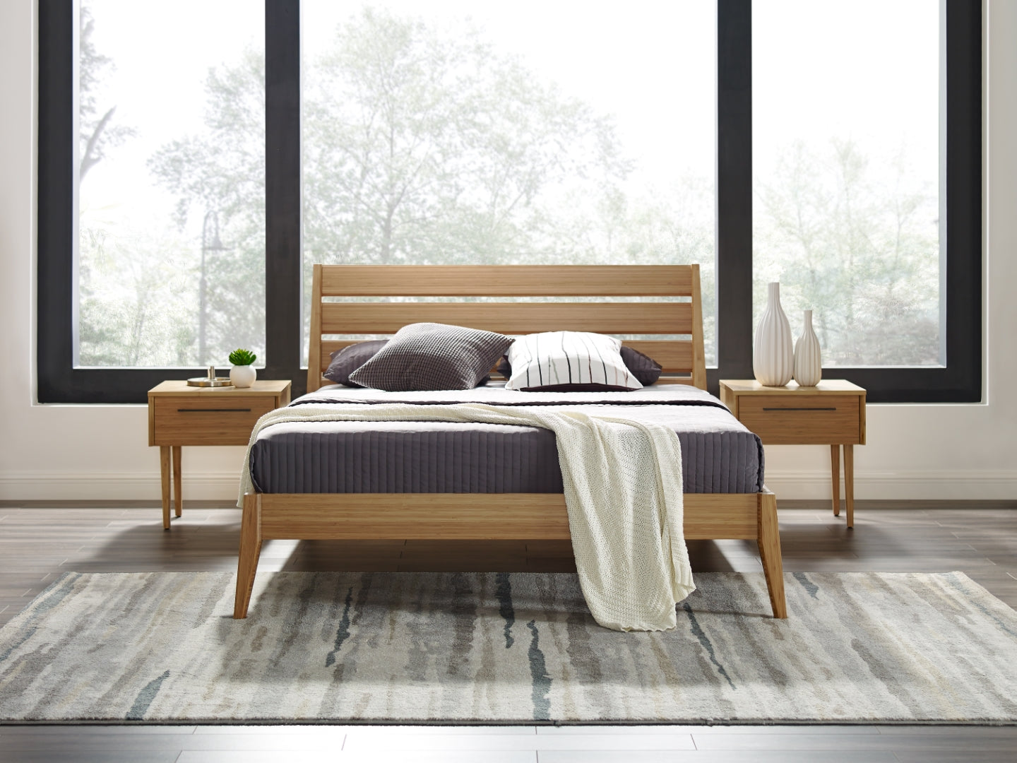 - Product Copy: Showcasing the beautiful color and grain of solid bamboo, the smartly scaled Sienna bed features contemporary styling, clean lines and beautifully beveled edges. The Sienna platform bed is designed for use with a mattress only, which is supported with a solid bamboo European slat system, eliminates the need for a box spring, and provides constant ventilation for your mattress. Available in both queen and king sizes, in your choice of caramelized or rich Mocha finish. The Sienna platform bed makes it easy for you to promote sustainability in a lovely, classic and functional way in your home.