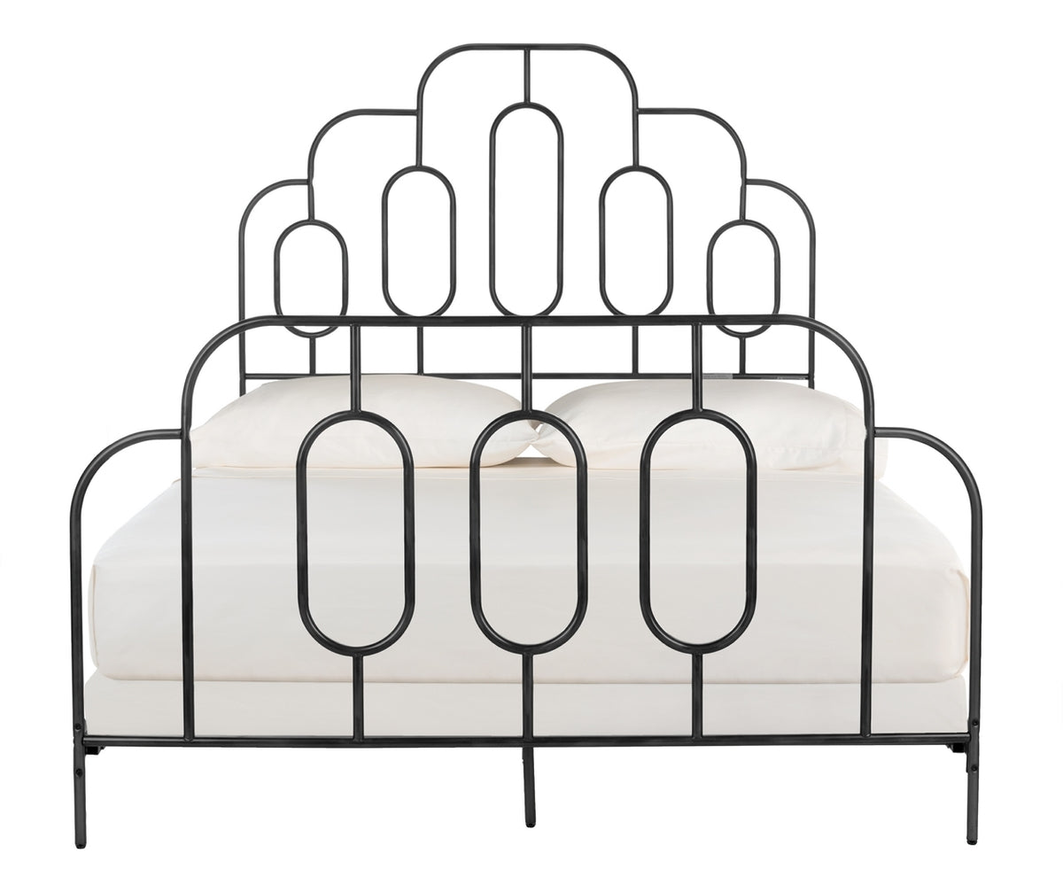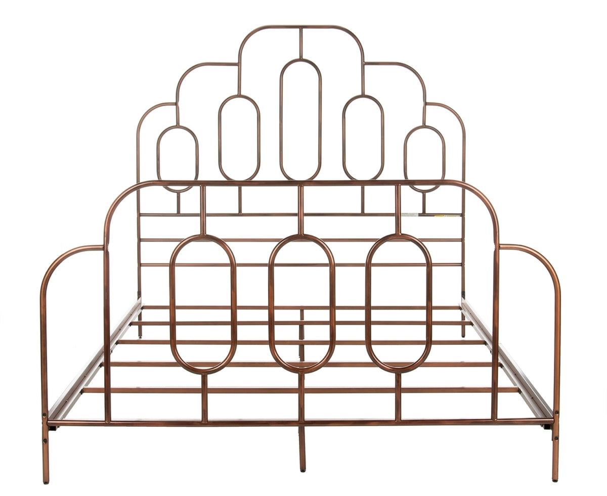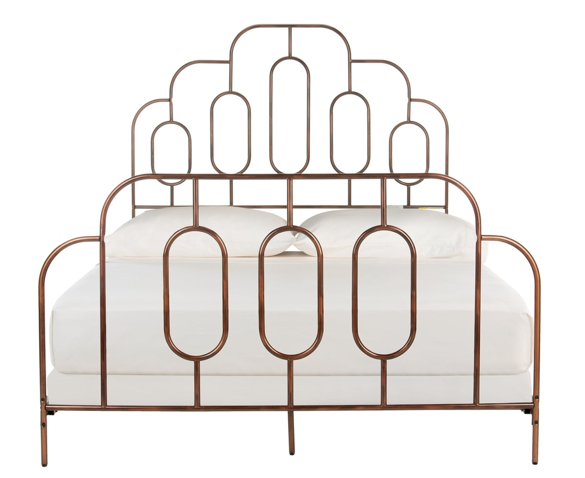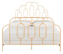 Bold and dramatic, this metal retro bed brings luxury and style to the bedroom. Crafted with sinuous curves, designers love the gold finish on its headboard and footboard. It casts a striking silhouette that complements any décor.