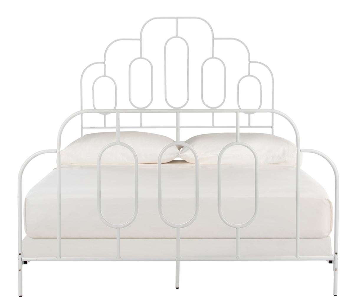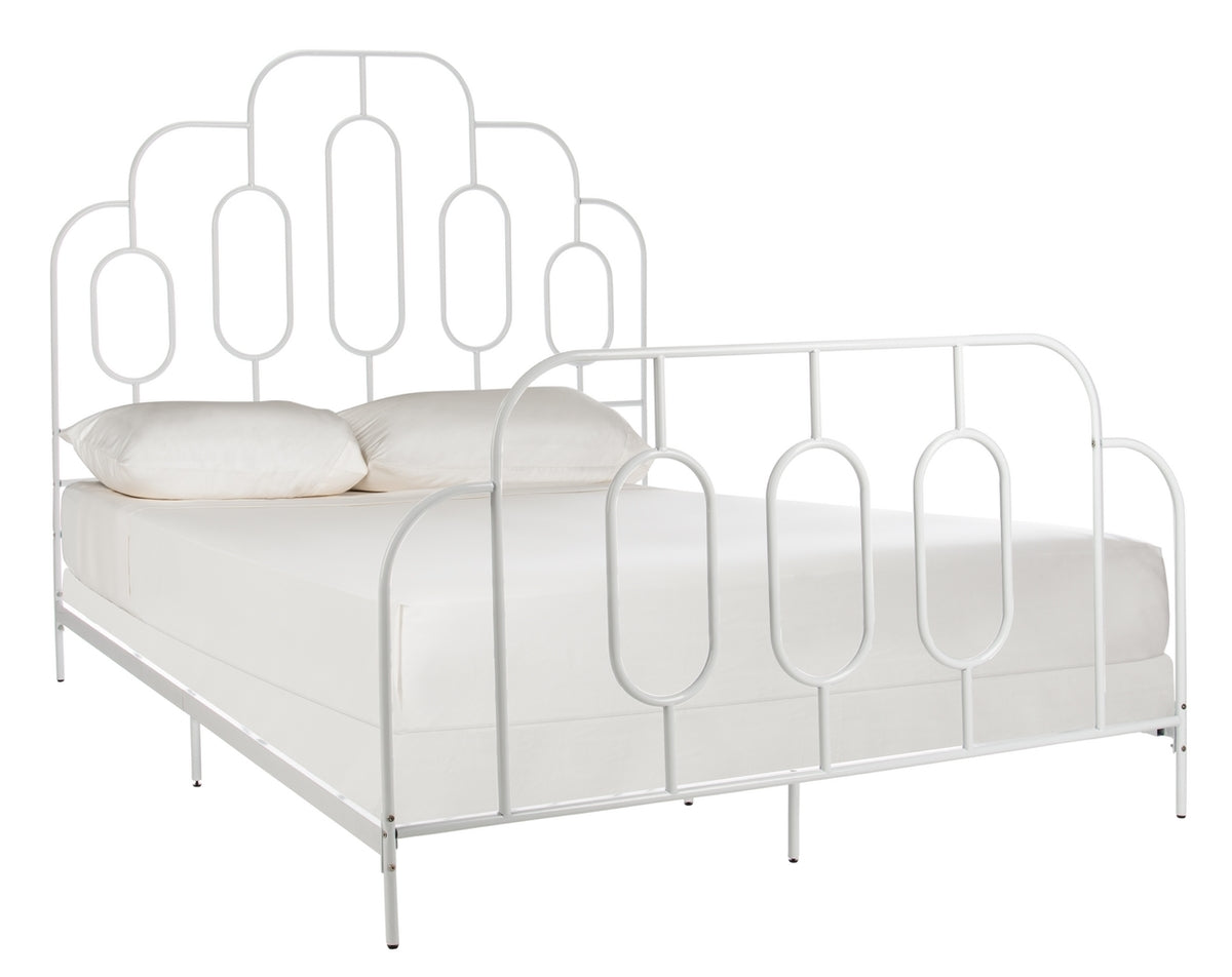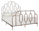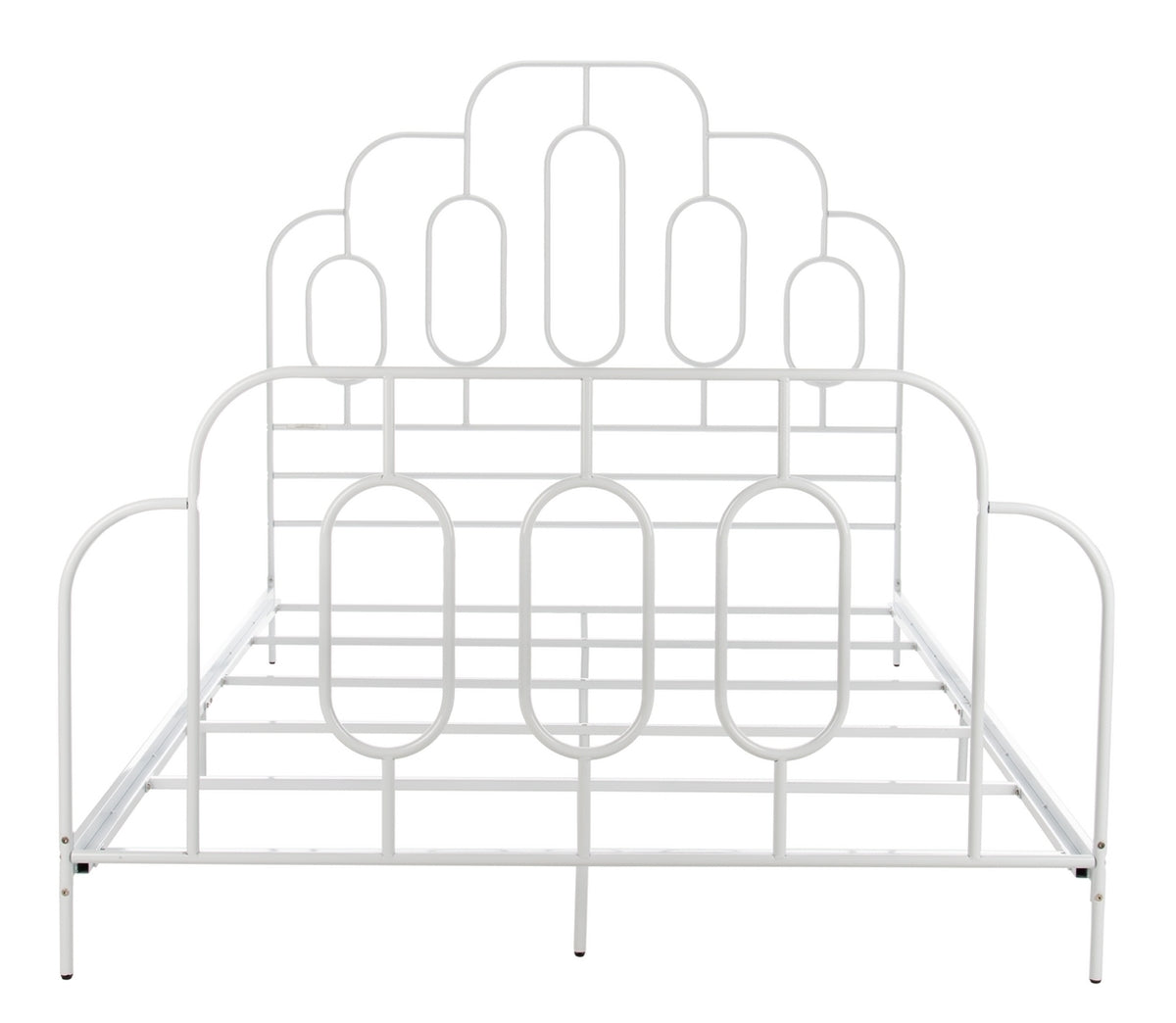 Bold and dramatic, this metal retro bed brings luxury and style to the bedroom. Crafted with sinuous curves, designers love the gold finish on its headboard and footboard. It casts a striking silhouette that complements any décor.