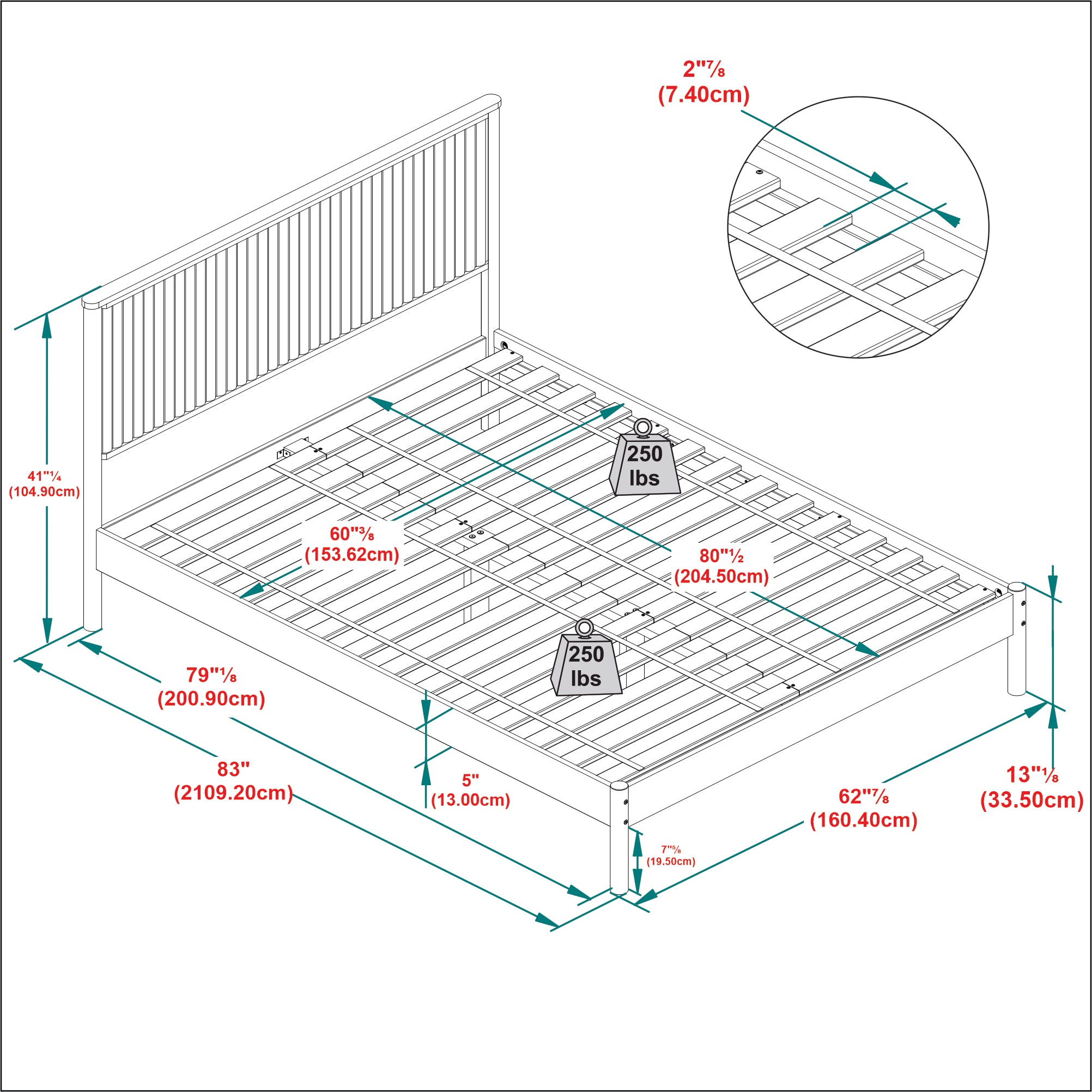 - Dimensions: ORLB5CBL Contemporary Reeded Headboard Solid Wood Queen Bed - 41.25" H x 83" L x 62.88" W