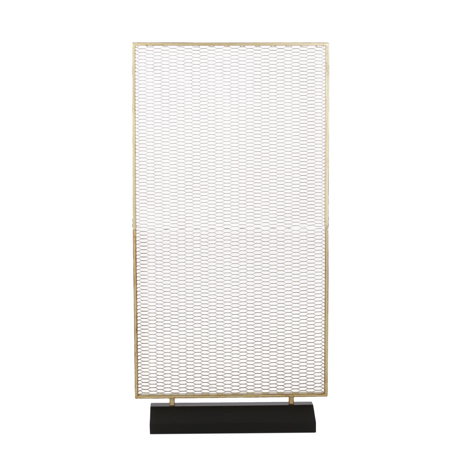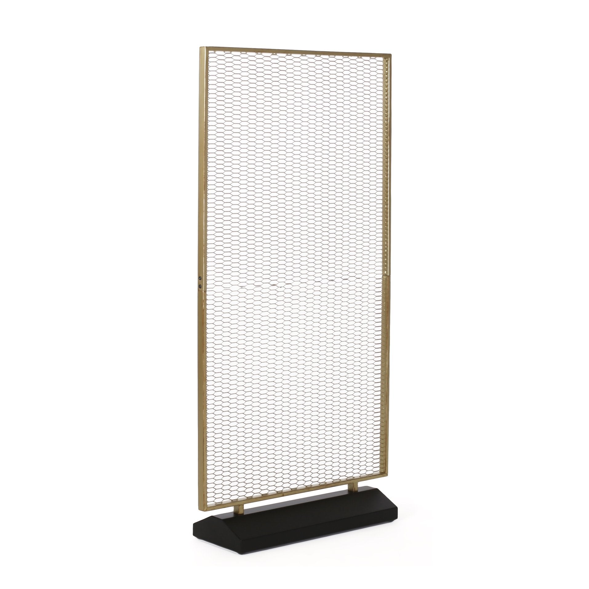 Introduce refined separation and modern flair to your interiors with this elegant freestanding steel screen. Designed to define spaces without closing them off, its breathable mesh panel and gold-brushed iron frame bring both function and understated style to living rooms, studios, home offices, or retail displays.