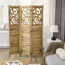 Create a versatile and stylish division in any room with this three-panel wooden folding screen—perfect for adding privacy, defining workspaces, or enhancing décor. Its rustic floral and louvered slat design blends classic charm with practical airflow, while the double-hinged construction lets you arrange it in multiple configurations to suit different spaces.