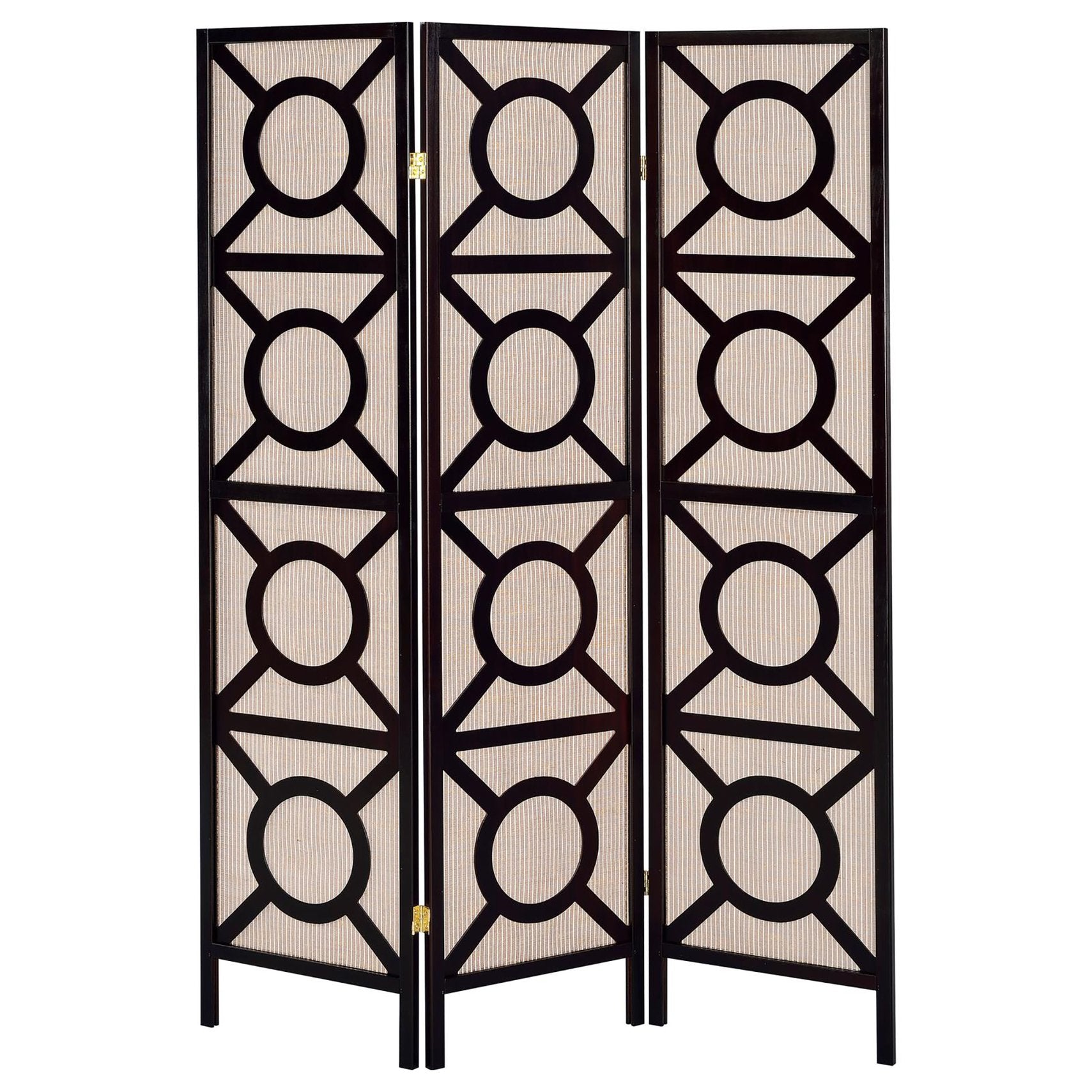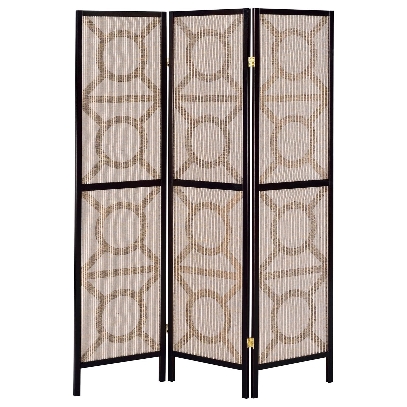 Bring modern elegance and practical privacy to any room with this three-panel folding screen. Its bold circle pattern and warm tan-and-cappuccino palette create a striking focal point that diffuses light while maintaining an airy feel. Whether used to define a corner, create a dressing area, or add visual interest behind furniture, the accordion-style panels offer flexible coverage and compact storage when not in use.