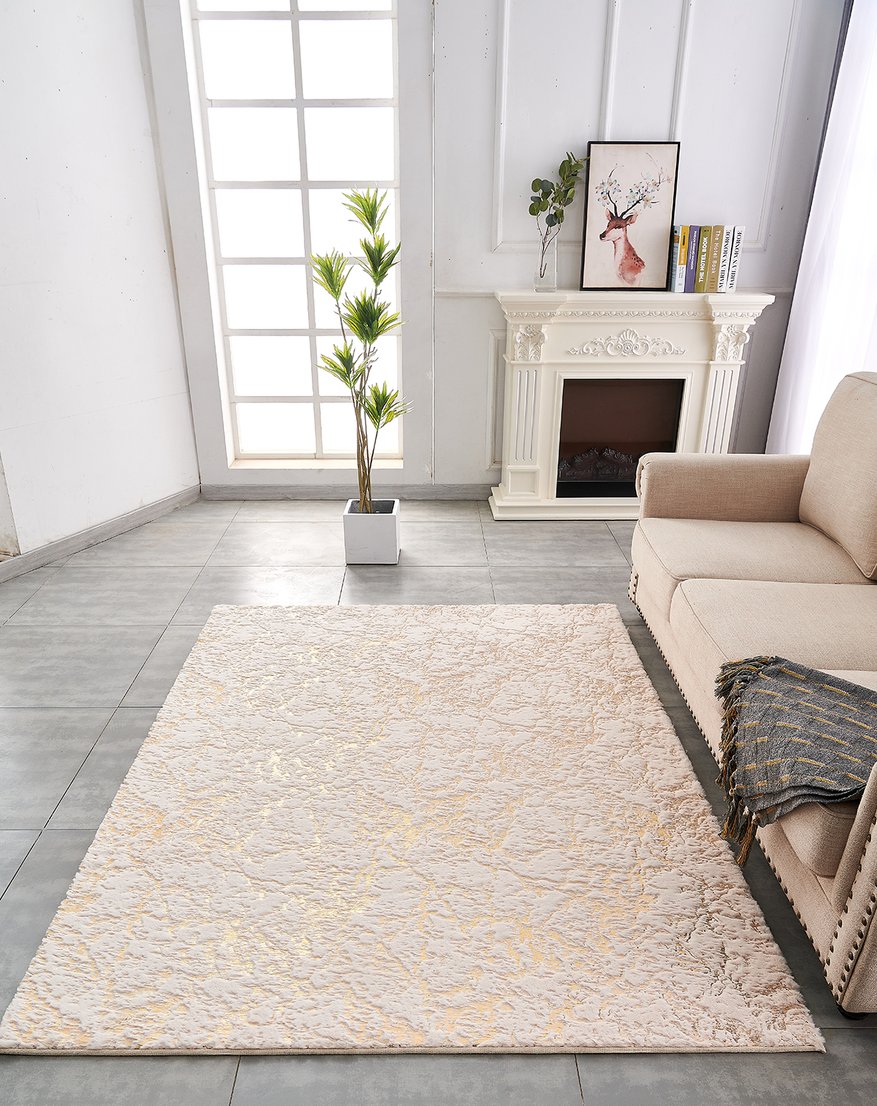 - Color & Design: Beige base with elegant gold-gilded abstract accents for a modern, luxurious look