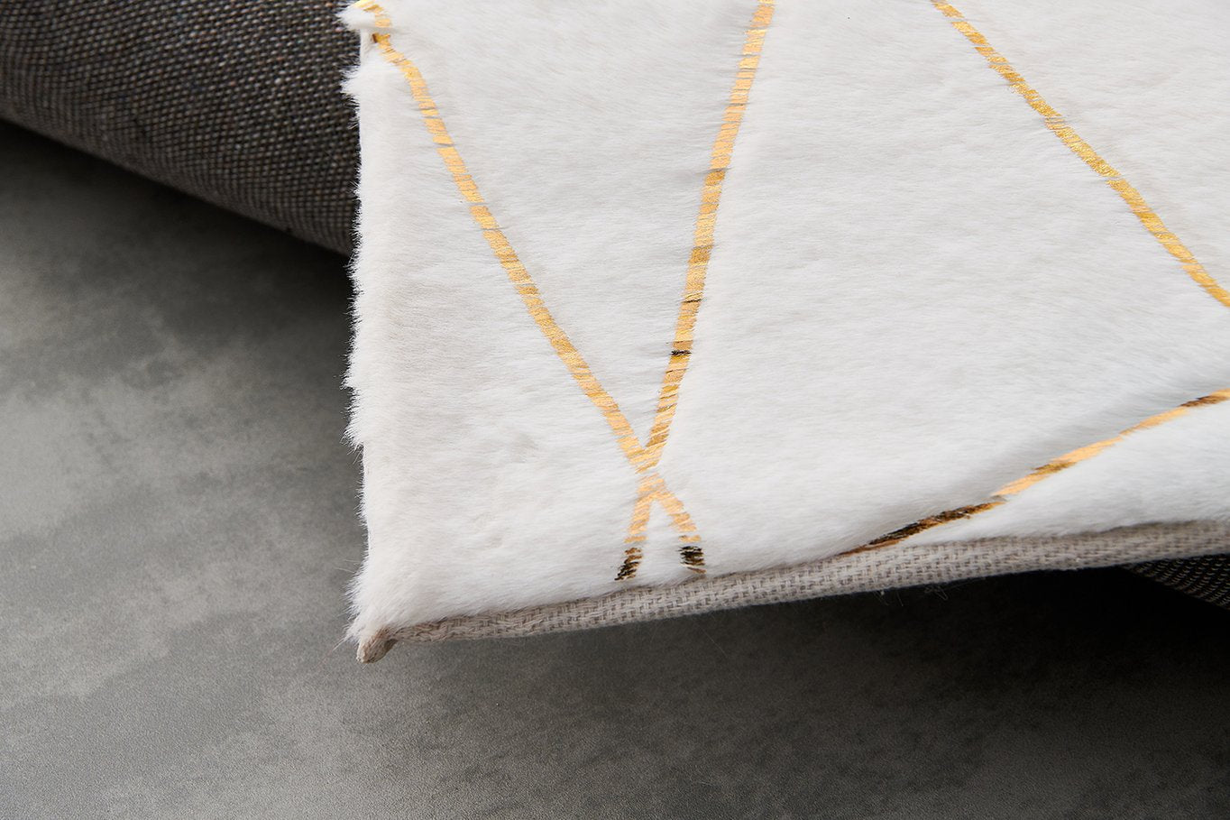 Elevate your living space with a luxurious, modern rug that combines plush comfort with easy care. This white-and-gold geometric abstract area rug features a chinchilla-style faux fur pile and subtle gilded accents for a sophisticated, contemporary look that warms bedrooms, living rooms, and sitting areas while remaining durable enough for everyday use.