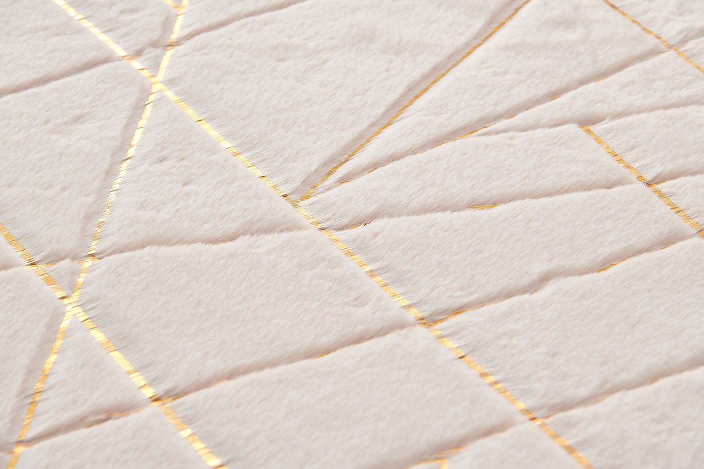 Add a touch of modern luxury to any room with this plush beige and gold-gilded chinchilla-style faux fur area rug. Designed for comfort and easy care, the rug combines a contemporary geometric-abstract pattern with soft polyester pile and a secure anti-slip backing, making it ideal for living rooms, bedrooms, and other cozy spaces.