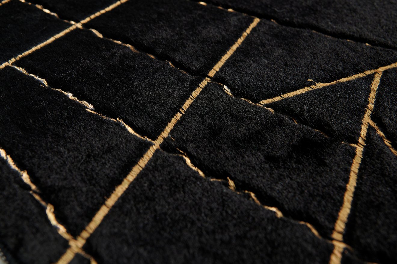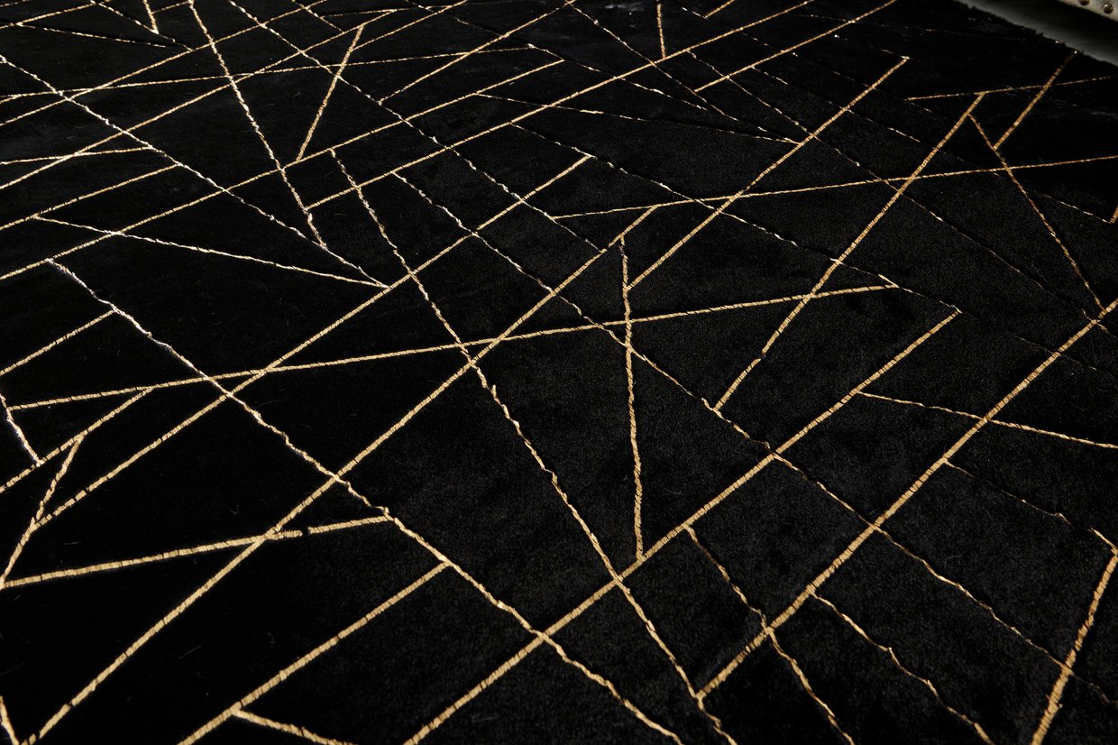 - Design: Modern geometric abstract pattern with elegant gold-gilded accents on a black background for a high-end look