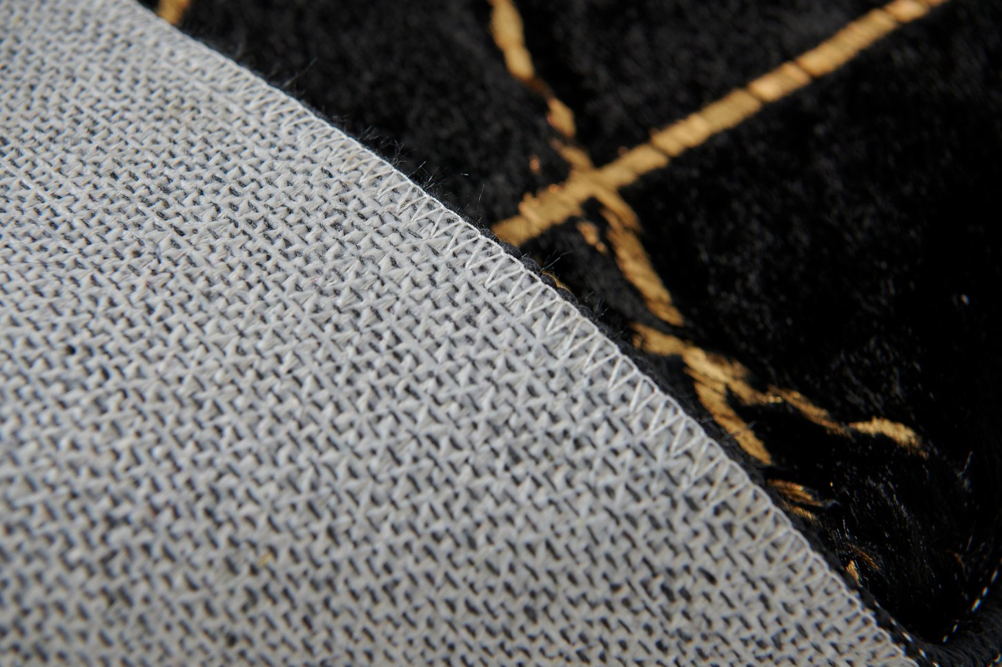 - Introducing Machine Washable Chinchilla-like Faux Fur Black Pink Area Rug. Beautiful contemporary Geometric Abstract Design. Made of soft and plush polyester, this rug features a scratch-resistant anti-slip rubber backing that's perfect for any types floors. The golden accent patterns give it a premium appeal, while its soothing tone creates a cozy and inviting atmosphere. This cozy rug looks perfect in your living room, bedroom, dining room or family room where you relax after a hectic day.