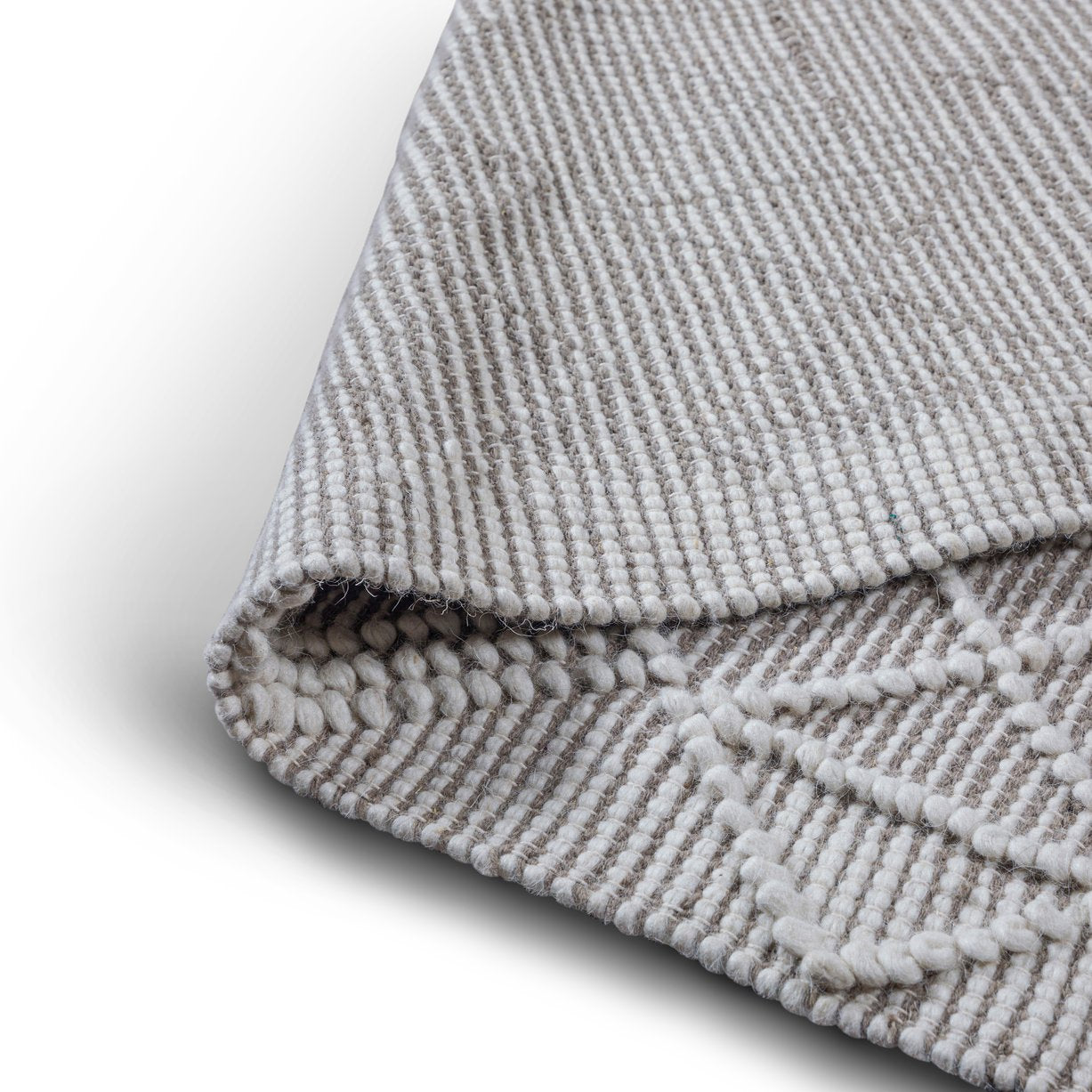 Elevate your living space with the Orton area rug — a handwoven, low-pile accent that blends classic geometry with neutral ivory and taupe tones. Crafted from a premium wool blend and finished with a hand-knotted fringe, this durable rug offers natural texture and warmth while maintaining a refined, modern look. Ideal for living rooms, dining areas, or bedrooms, it’s designed to perform well under everyday use; minor shedding at first is normal and reduces with regular vacuuming.
