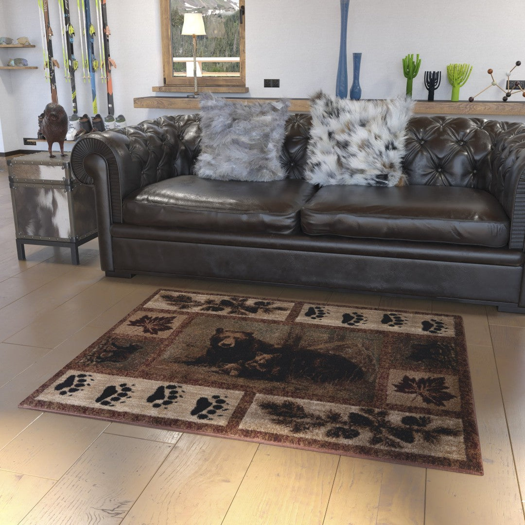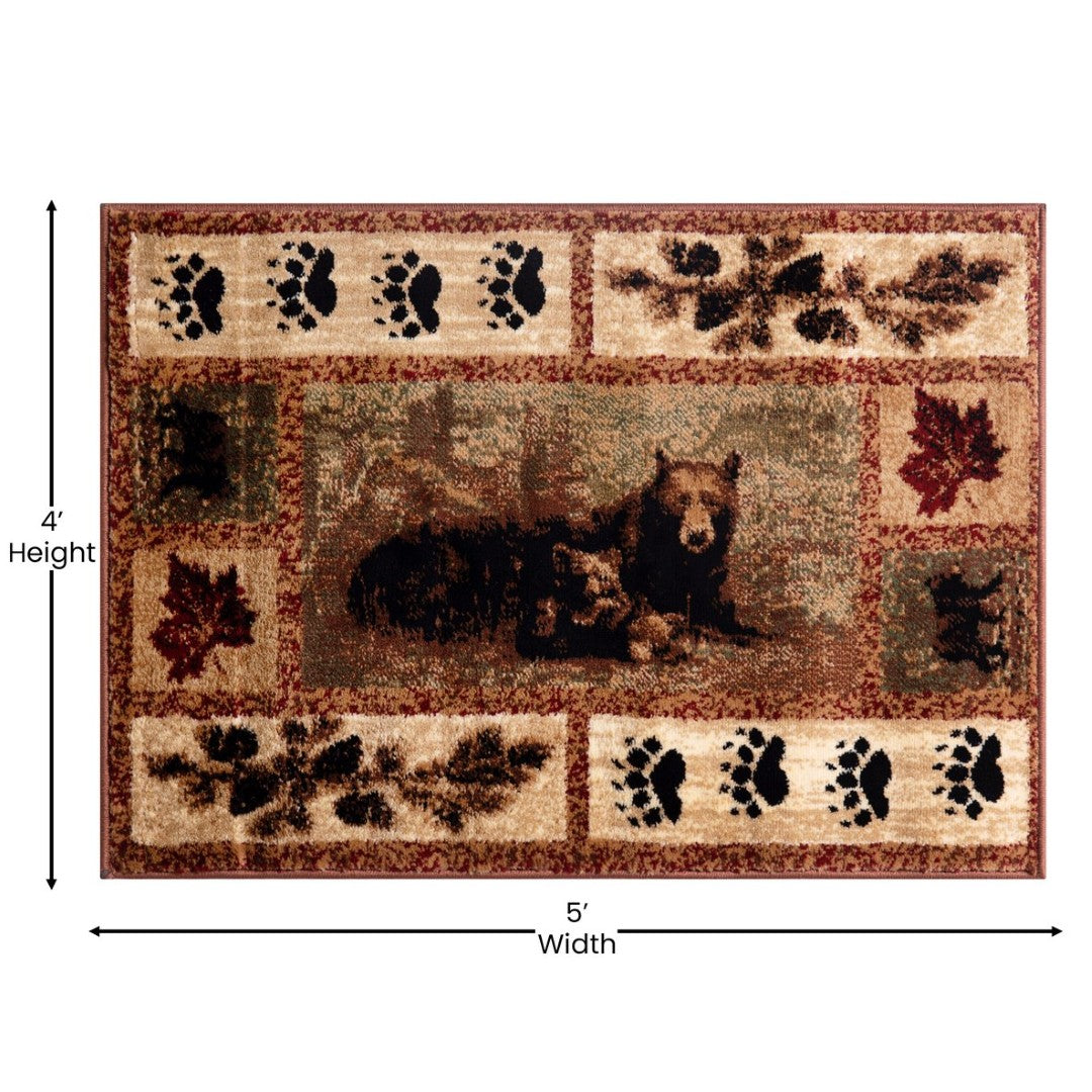 Bring a touch of rustic wildlife charm to your home with this nature-themed area rug featuring a mother bear and her two cubs. Designed for durability and everyday comfort, this compact rug is ideal for entryways, beside beds, or as an accent in living rooms. Its stain- and water-resistant olefin surface combined with a breathable jute backing makes it both practical and attractive for homes with kids and pets.