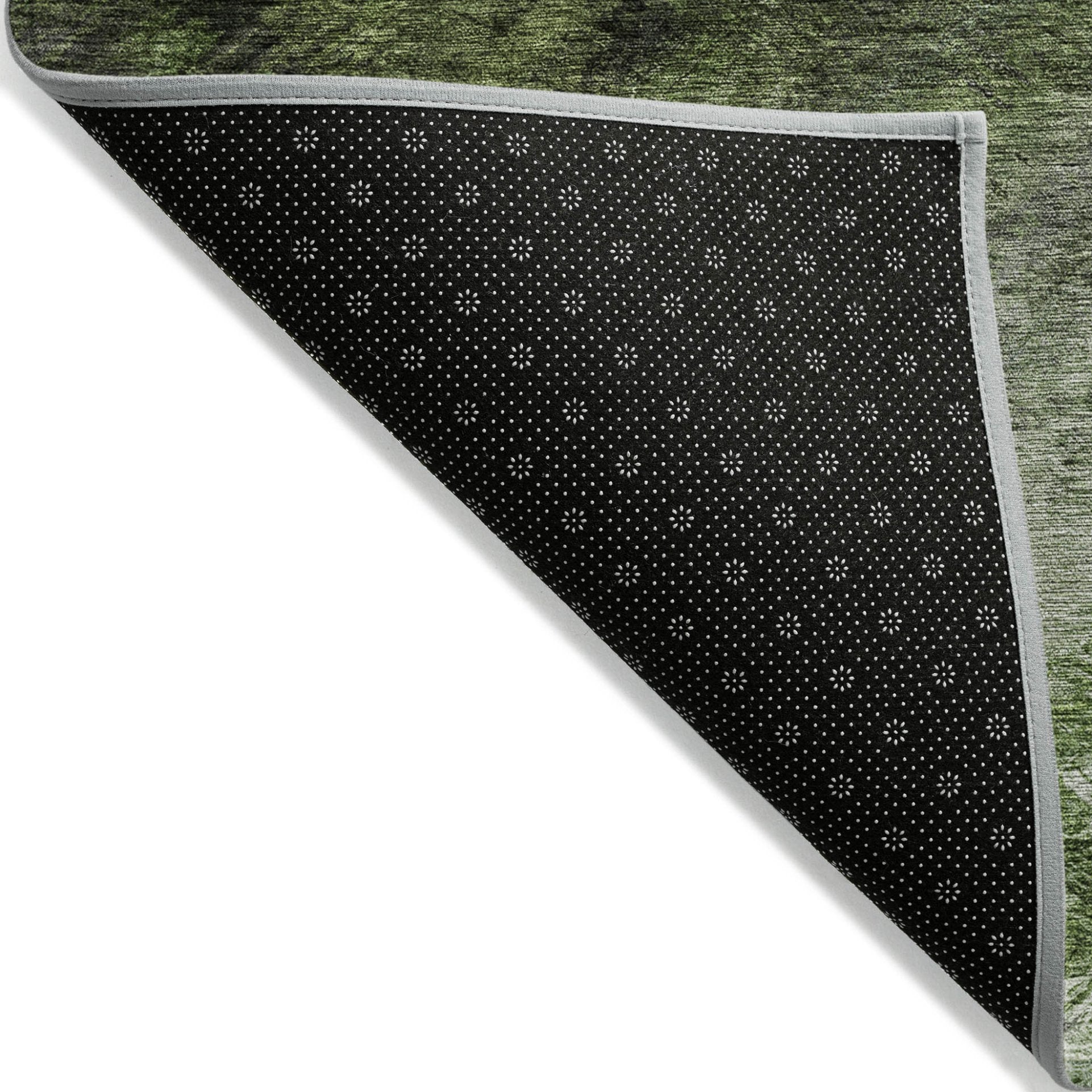 - A felt backing covers this rug to finish the look, keep the fibers in place, and help to keep the rug from slipping.