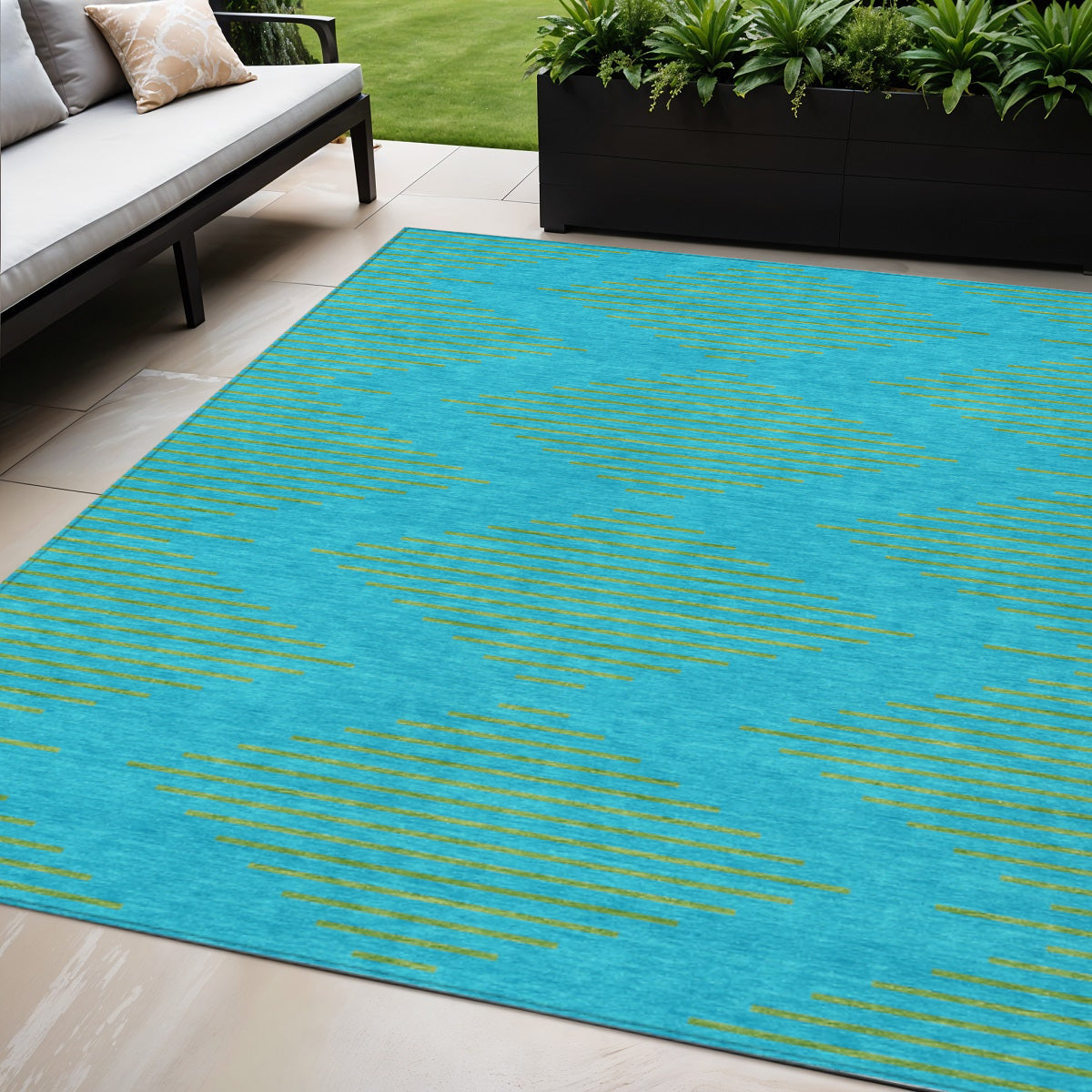 - Suitable for use both indoors and outdoors this rug is ideal for deck, porch, patio, pool, kitchen, entrance foyer, and more.