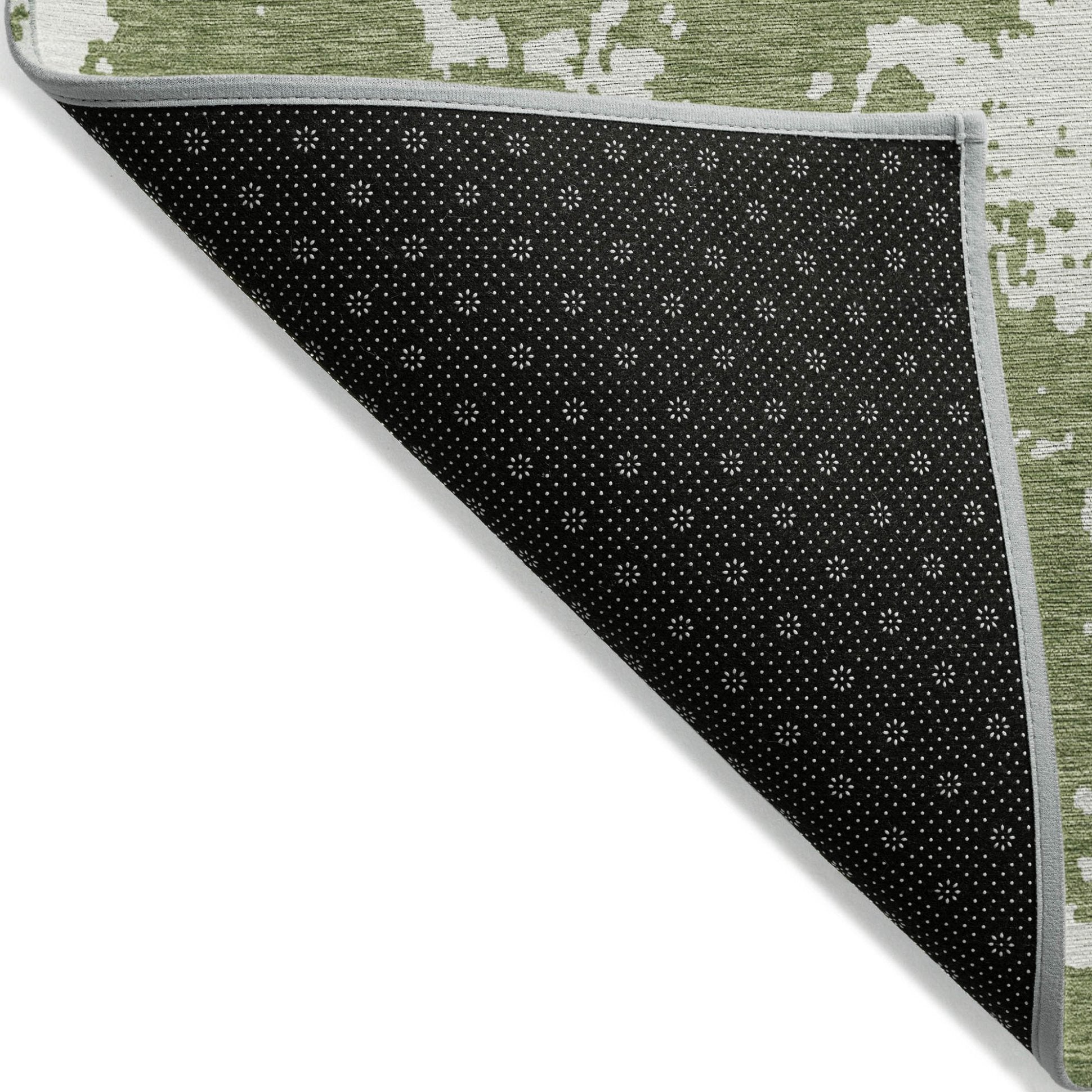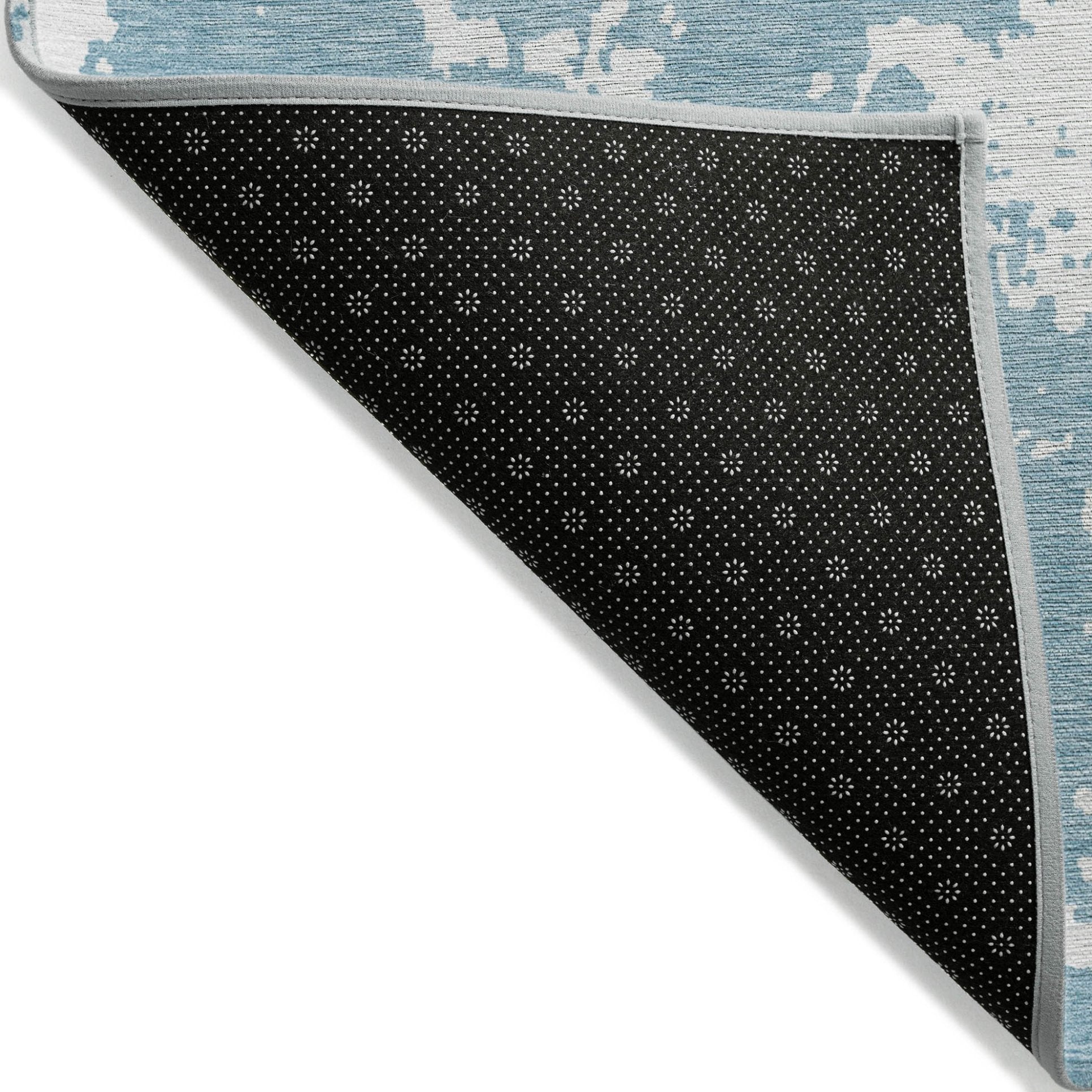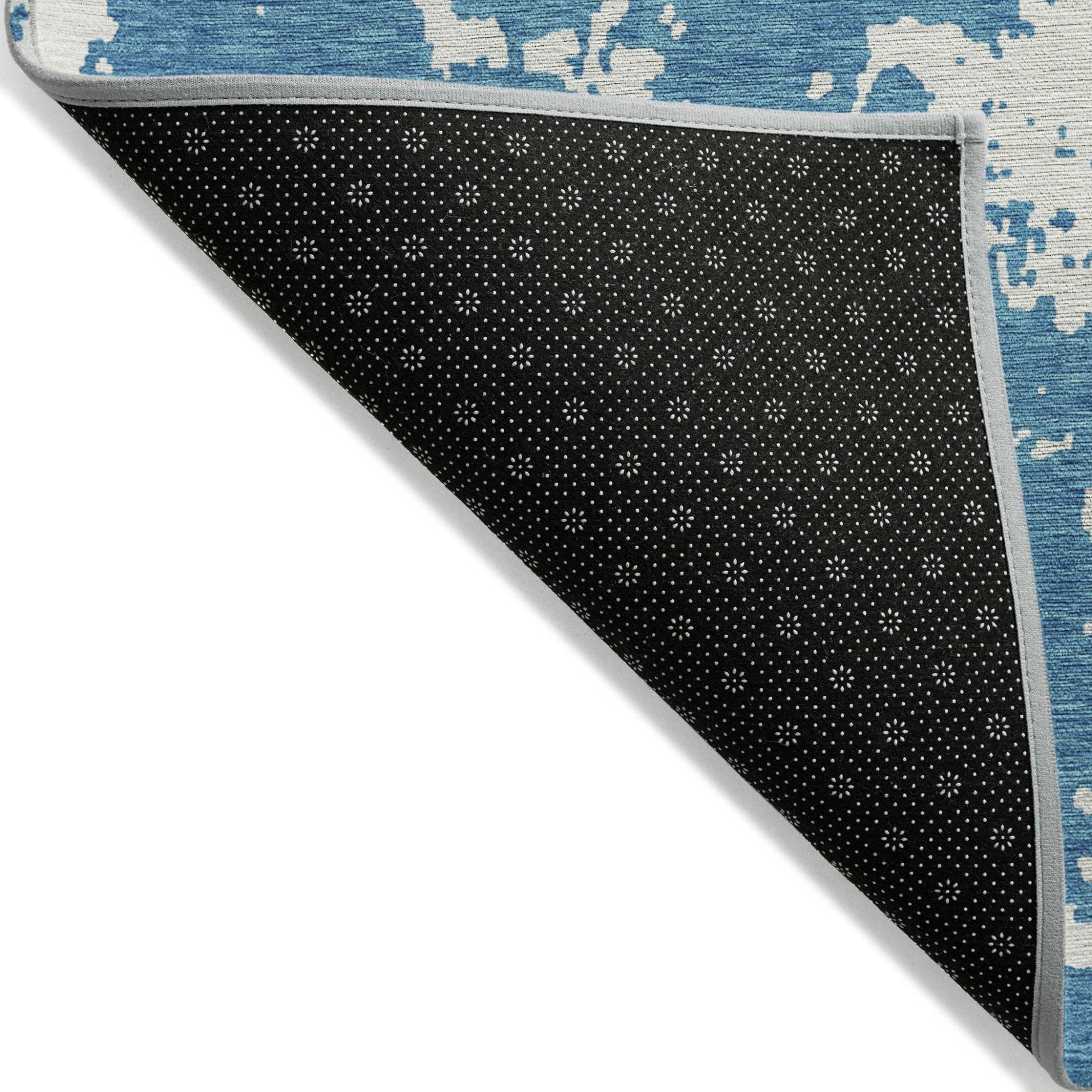 - A felt backing covers this rug to finish the look, keep the fibers in place, and help to keep the rug from slipping.