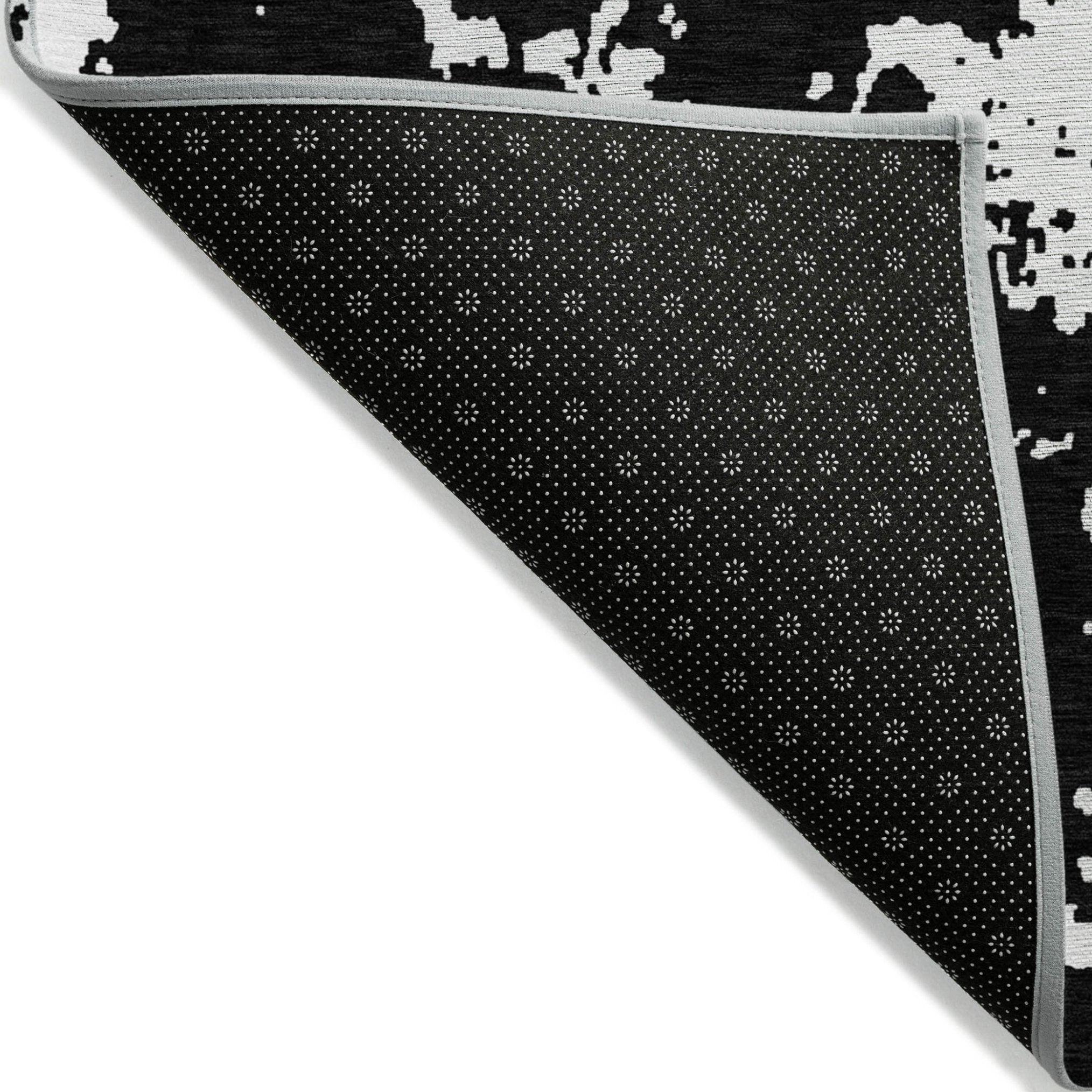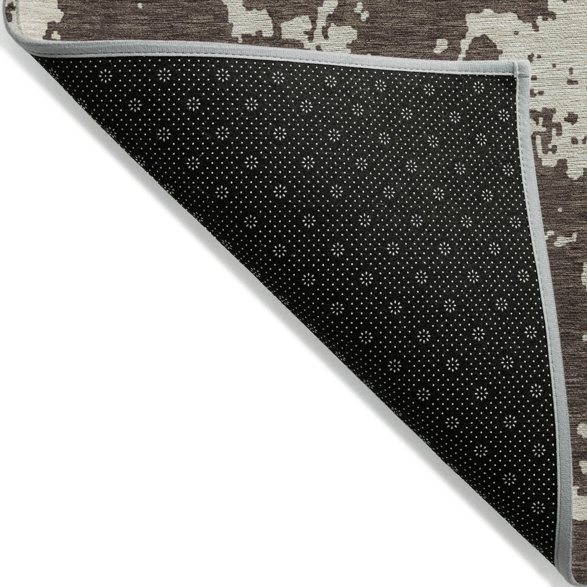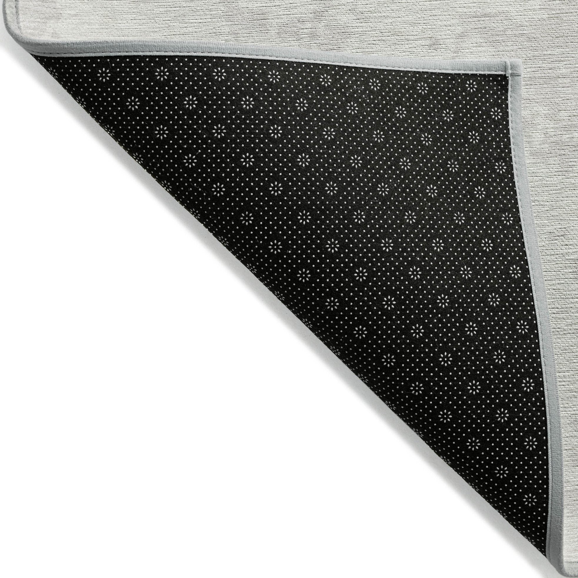 - A felt backing covers this rug to finish the look, keep the fibers in place, and help to keep the rug from slipping.