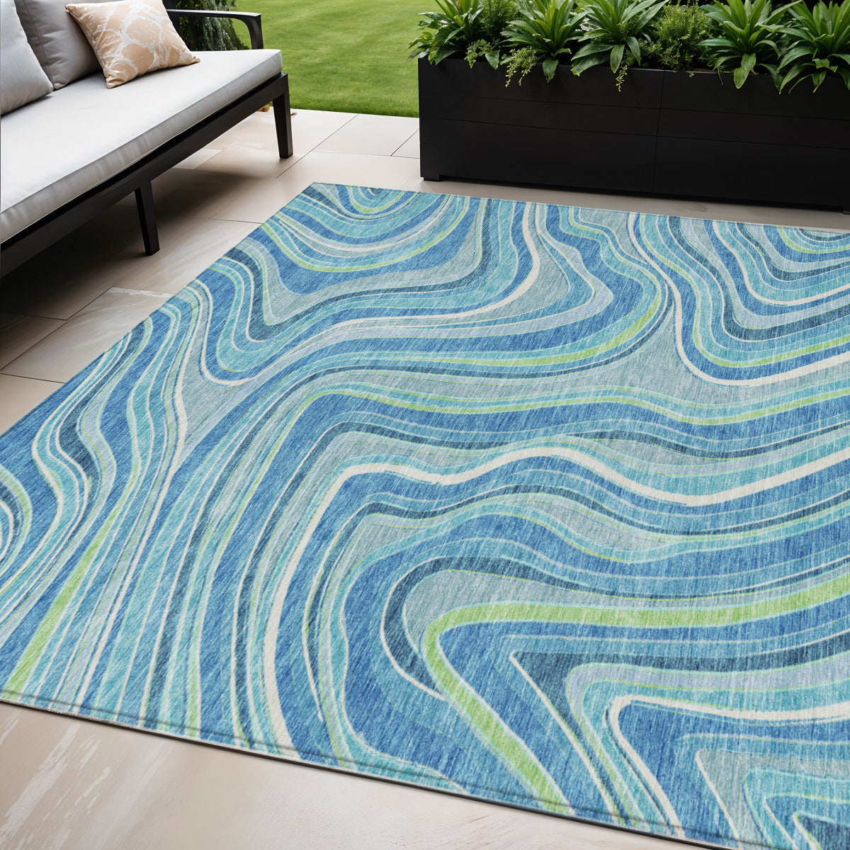- Suitable for use both indoors and outdoors this rug is ideal for deck, porch, patio, pool, kitchen, entrance foyer, and more.