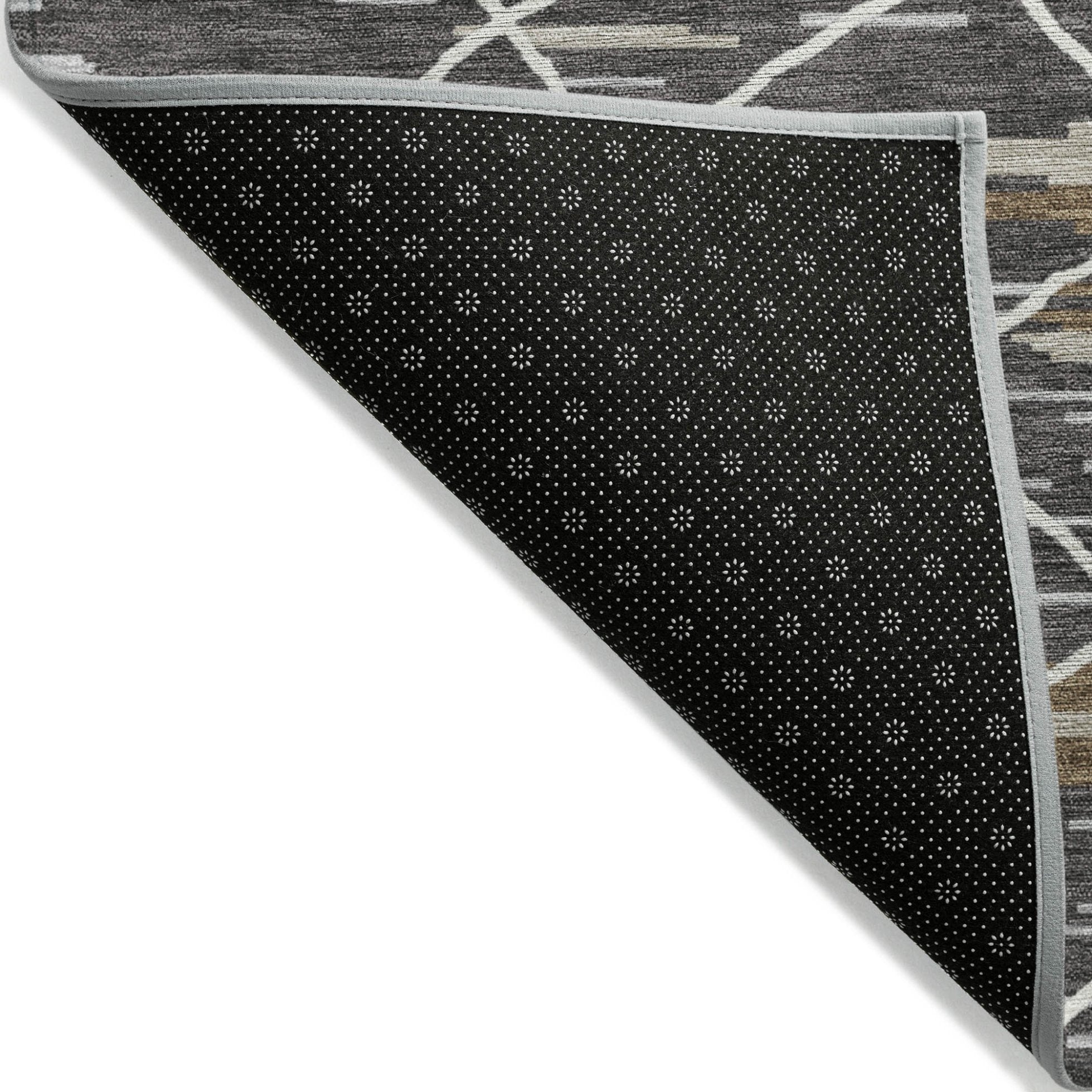 - A felt backing covers this rug to finish the look, keep the fibers in place, and help to keep the rug from slipping.