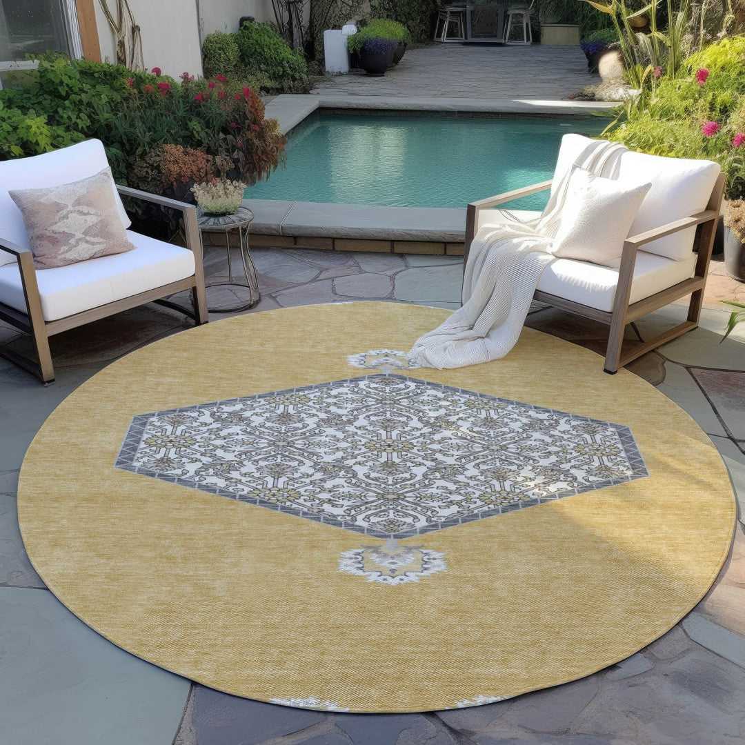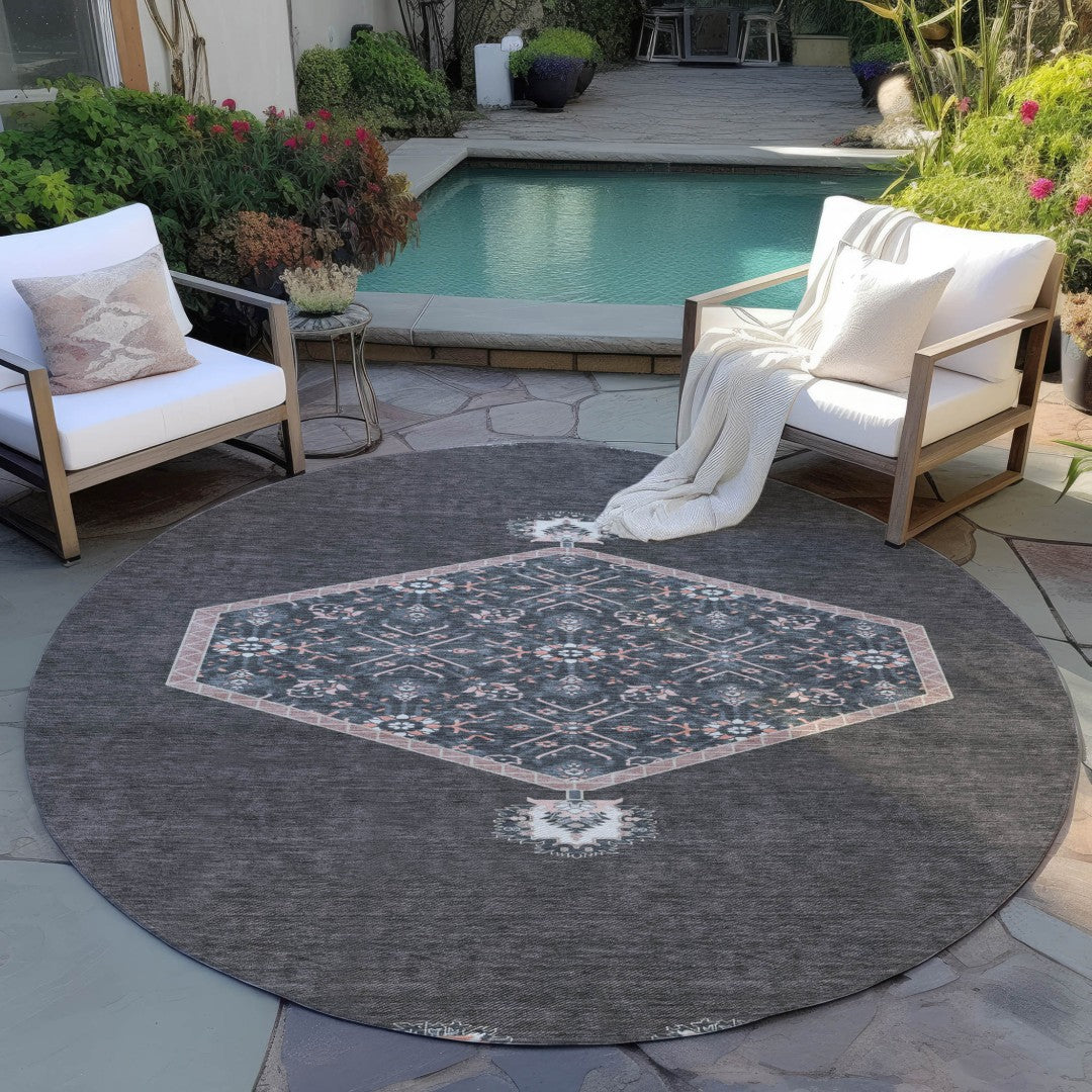 - Classically shaped, this versatile round rug is a great way to accent your indoor or outdoor space.