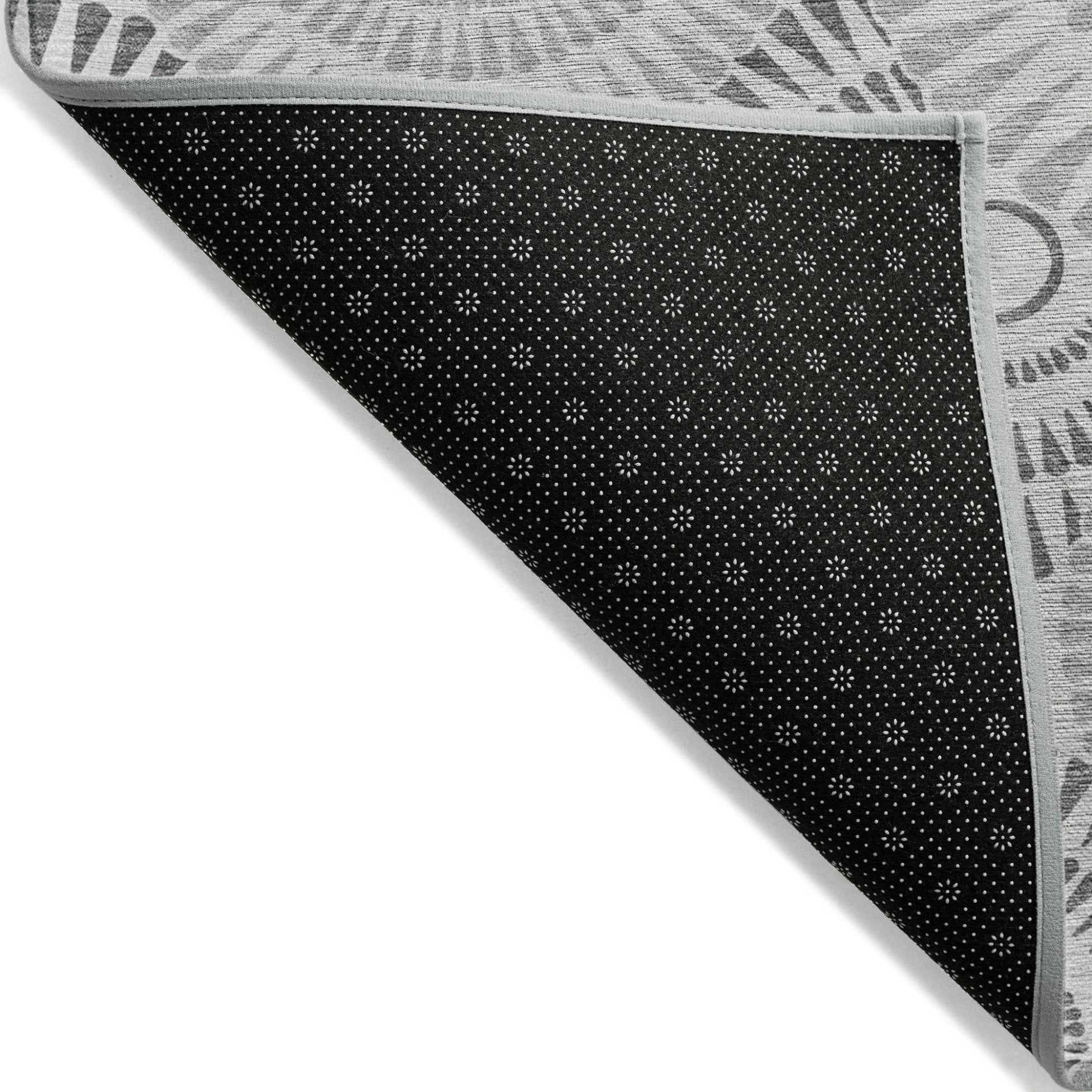 - A felt backing covers this rug to finish the look, keep the fibers in place, and help to keep the rug from slipping.