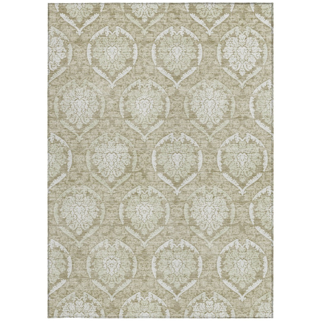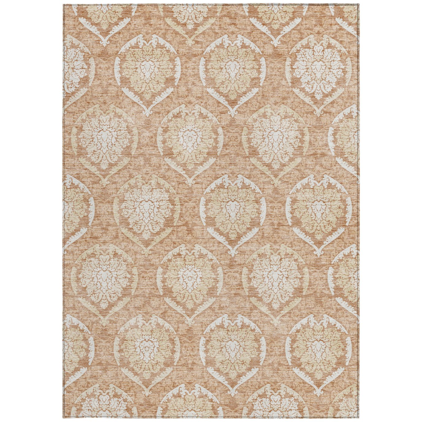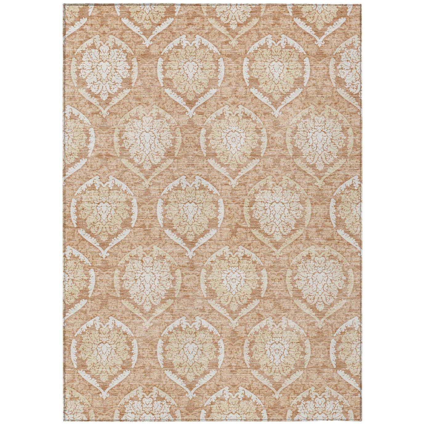 - Machine made outdoor rug with stain-resistant polyester material.