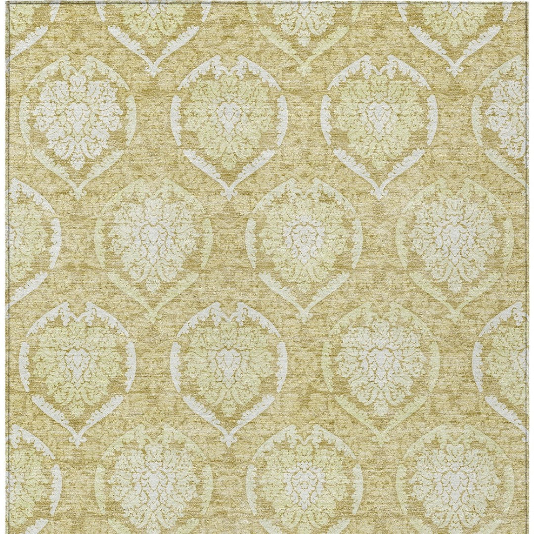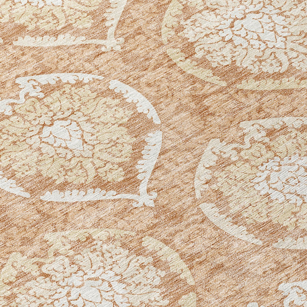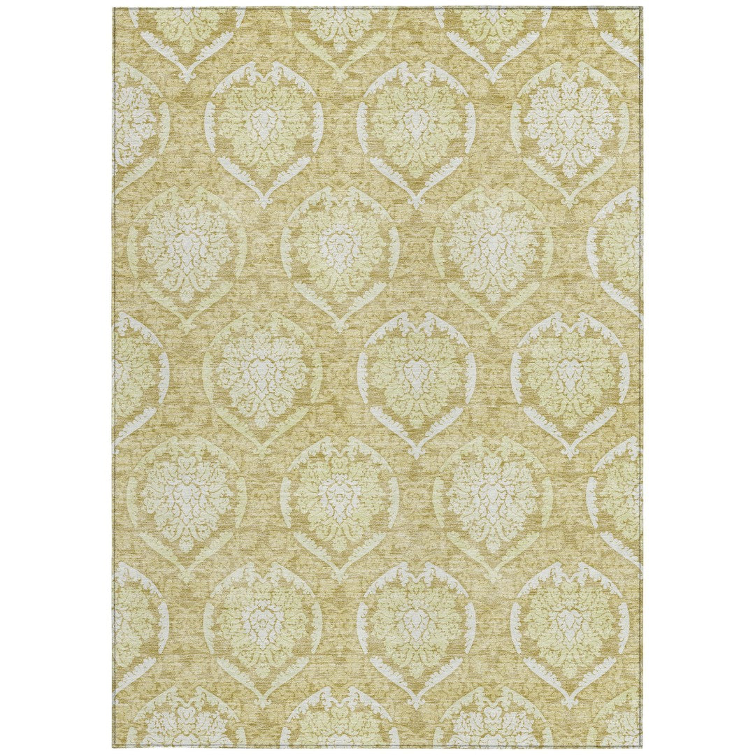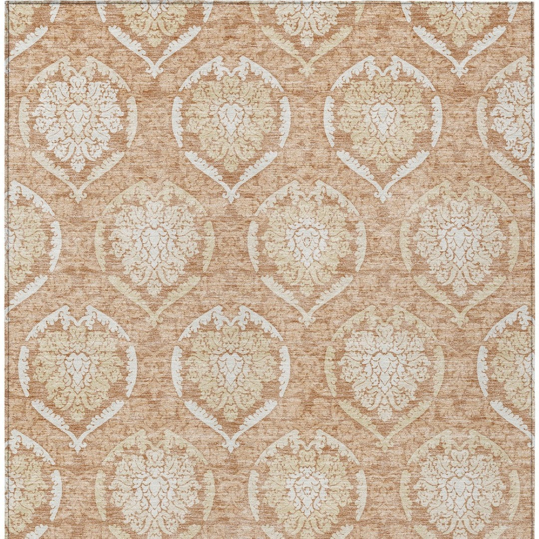 - Machine made outdoor rug with stain-resistant polyester material.
