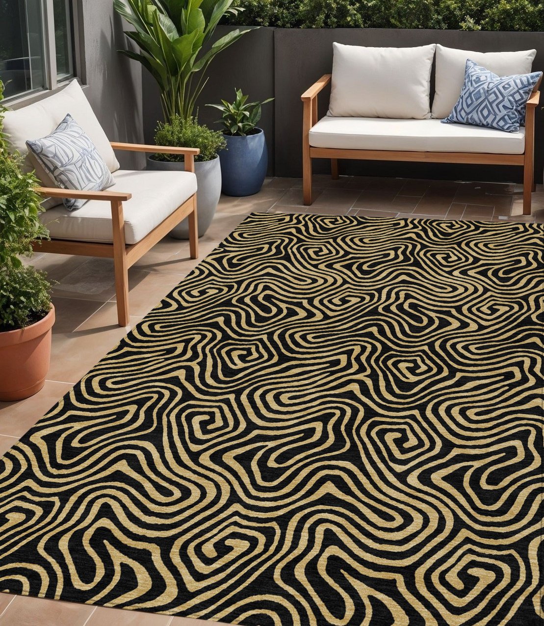 - Suitable for use both indoors and outdoors this rug is ideal for deck, porch, patio, pool, kitchen, entrance foyer, and more.