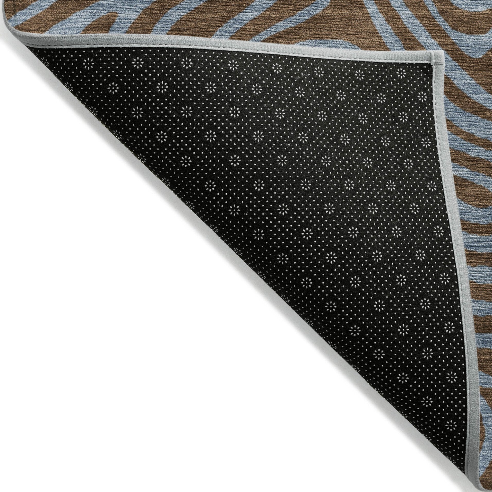- A felt backing covers this rug to finish the look, keep the fibers in place, and help to keep the rug from slipping.