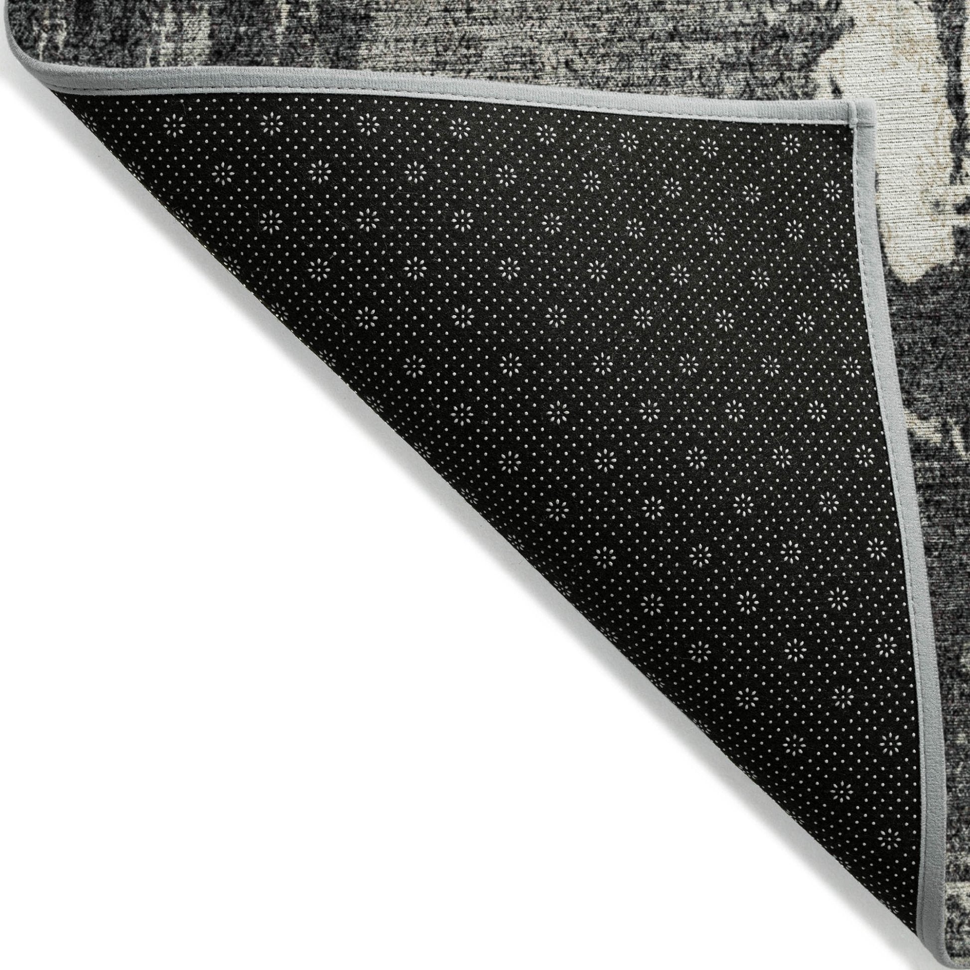 - A felt backing covers this rug to finish the look, keep the fibers in place, and help to keep the rug from slipping.