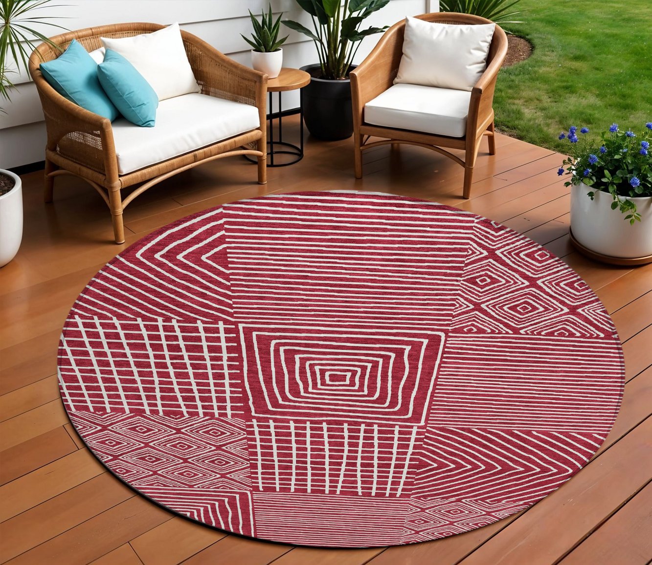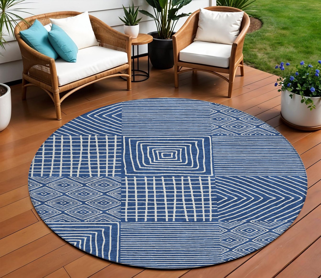 - Suitable for use both indoors and outdoors this rug is ideal for deck, porch, patio, pool, kitchen, entrance foyer, and more.