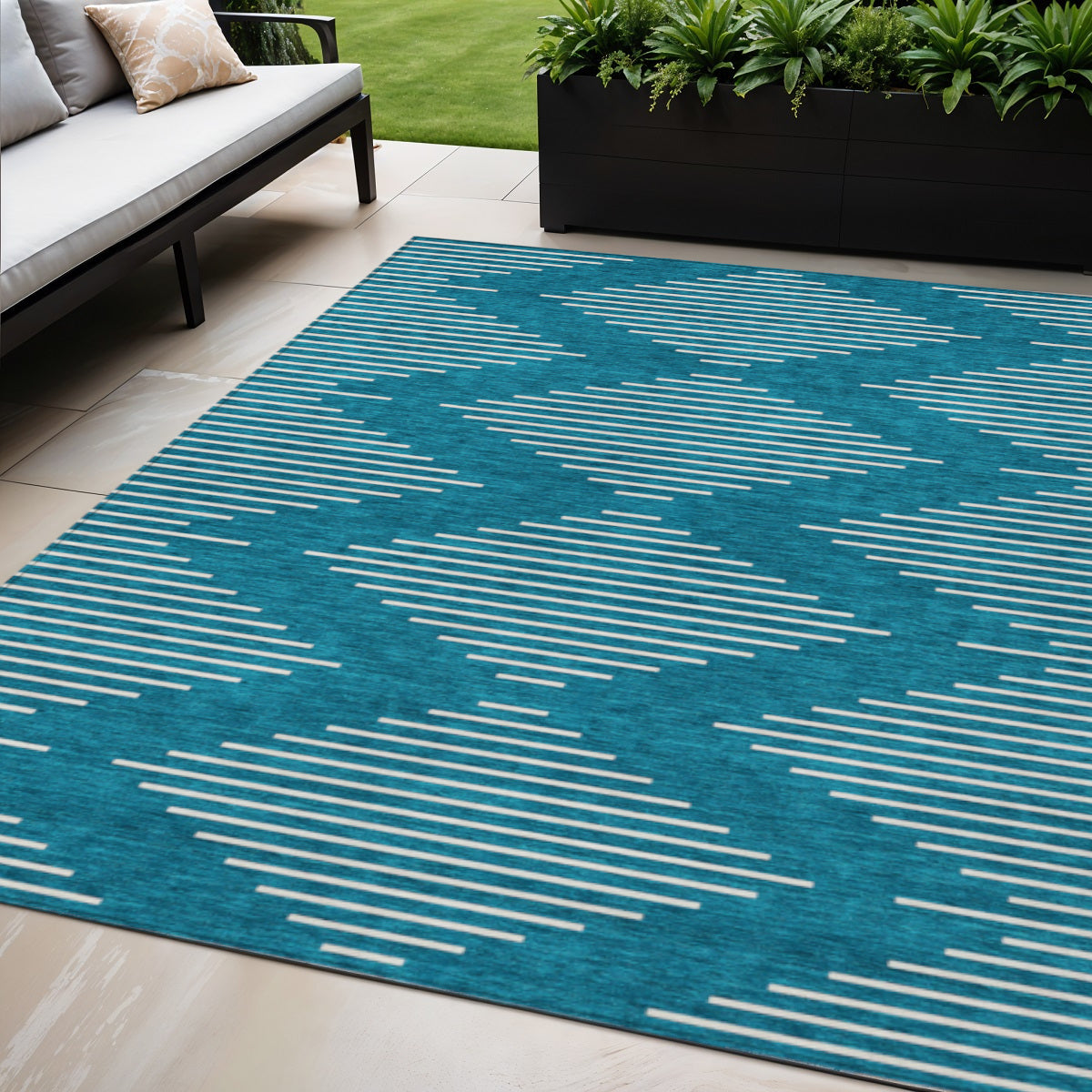 - Suitable for use both indoors and outdoors this rug is ideal for deck, porch, patio, pool, kitchen, entrance foyer, and more.